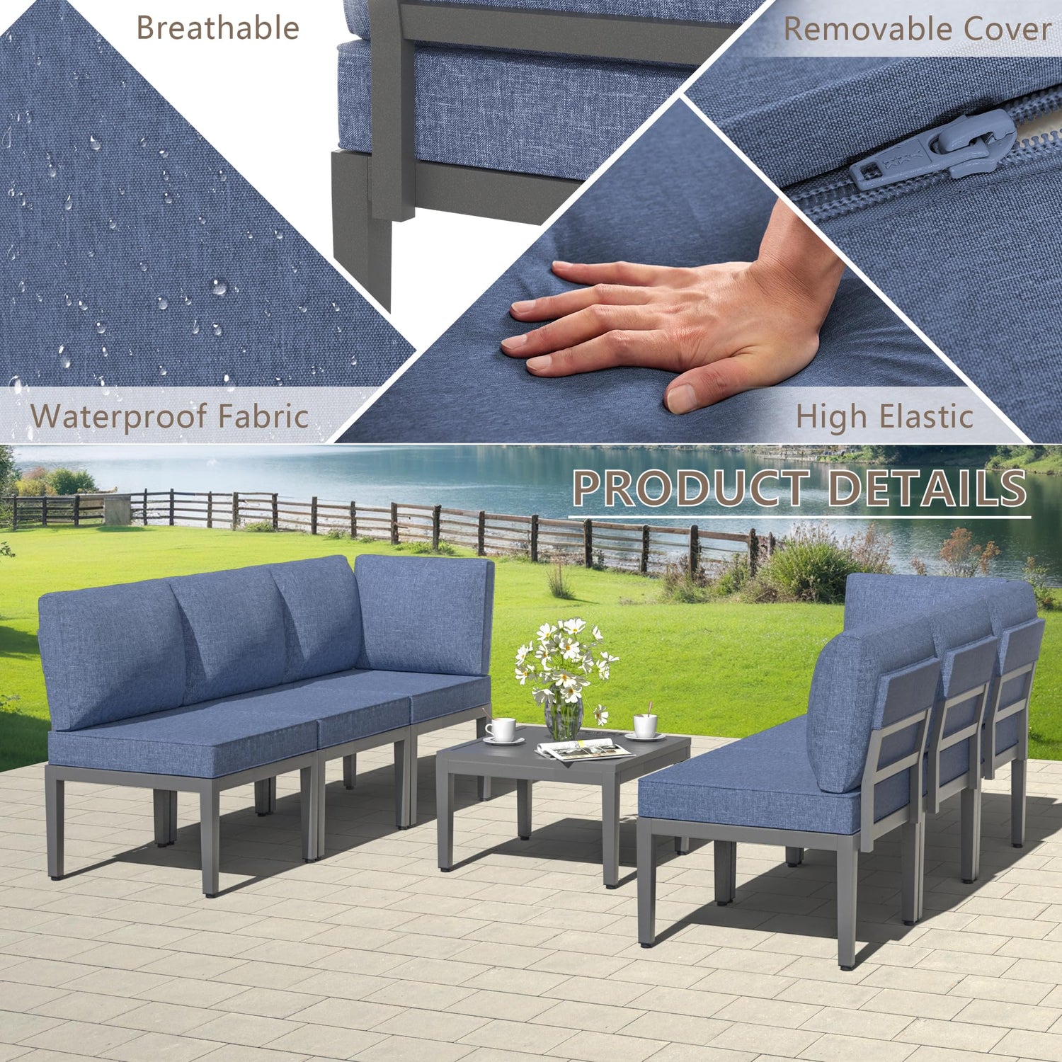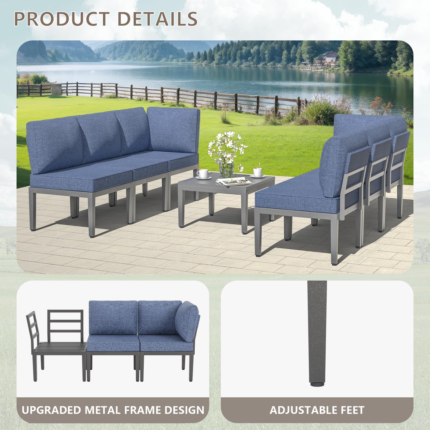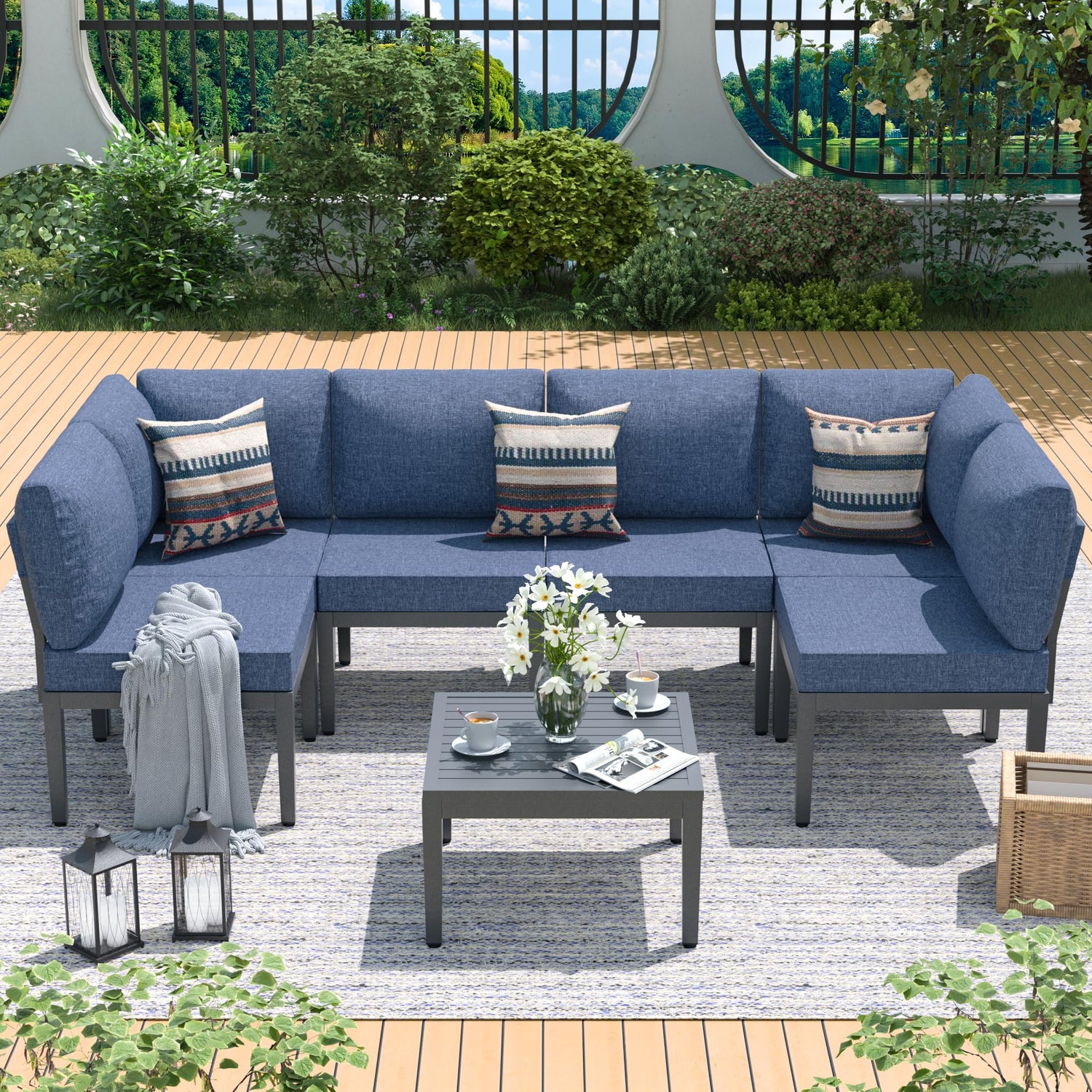 Kullavik Patio Furniture Set,7 Pieces Metal Modern Outdoor Furniture,Outdoor Sectional Sofa w/5.1" Cushions and Coffee Table for Patio,Backyard,Navy Blue