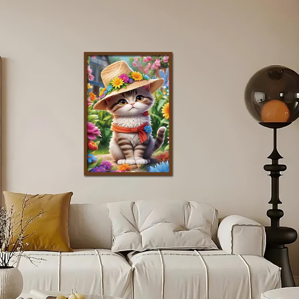 Kulvci Cat Diamond Painting Kits for Adults, Diamond Art Kits for Beginners, 5D DIY Full Drill Gem Craft for Home Decor Gift 12x16inch