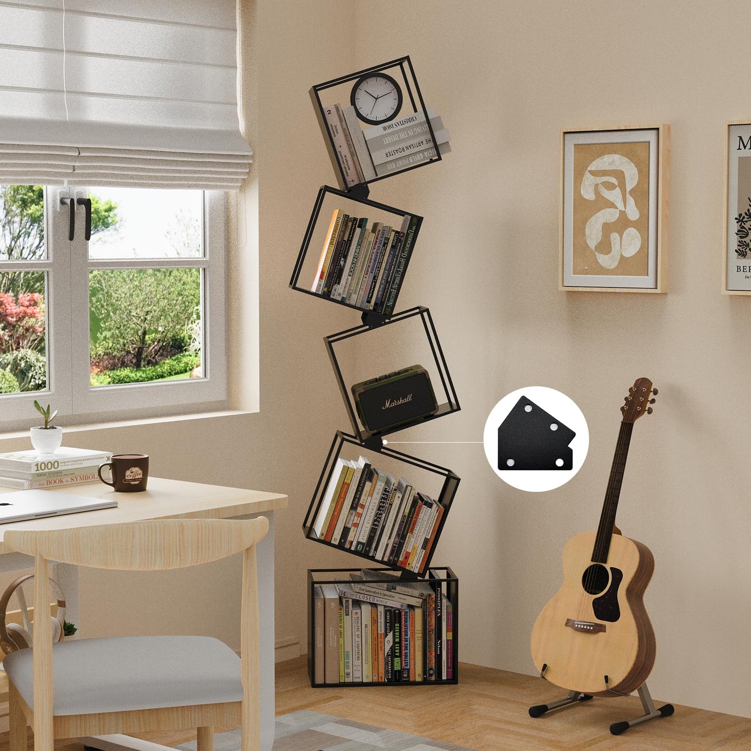 - Unique Geometric Design – A True Statement Piece: Featuring a striking 5 tier open structure with a sleek matte metal finish, this bookshelf breaks traditional norms with its slanted geometric design. It’s more than just storage—it’s a bold visual centerpiece that adds creativity and modern sophistication to any space.