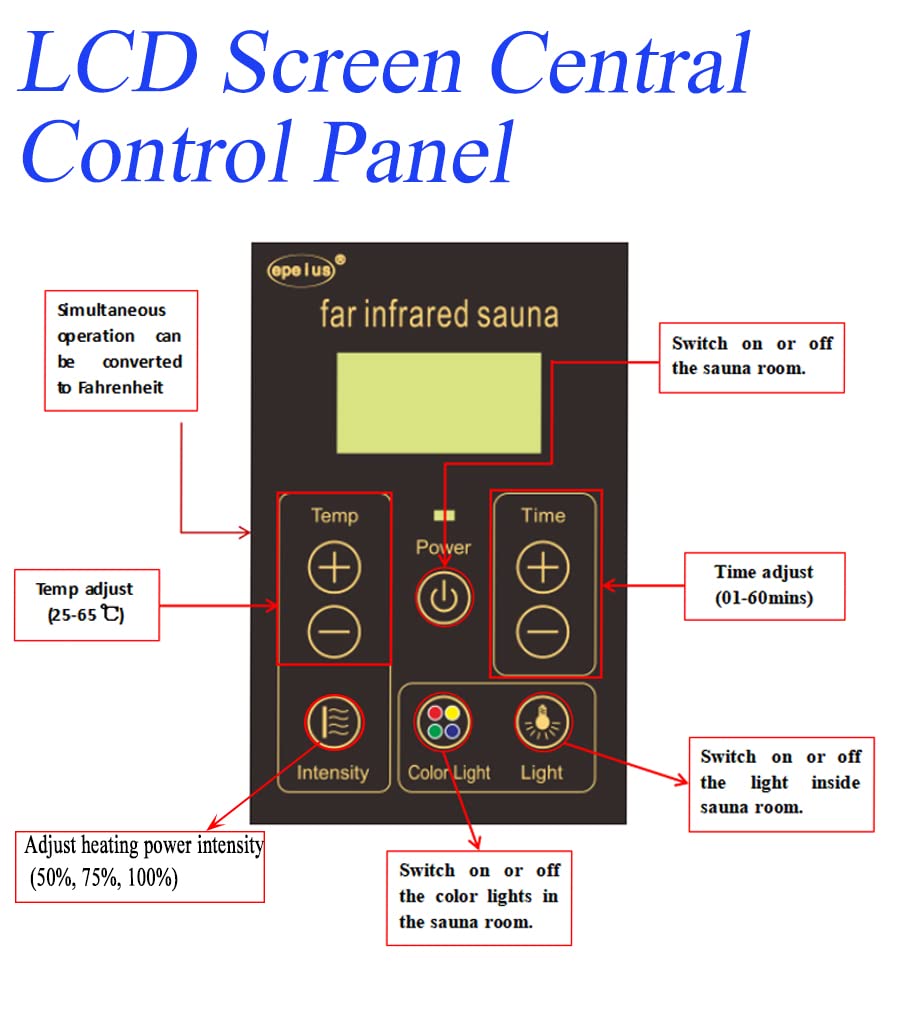 - PREMIUM FEATURES SAUNA – Ease the stresses of the day with a full-spectrum color therapy system. Single-side LCD control panel to open up intelligent physiotherapy living.