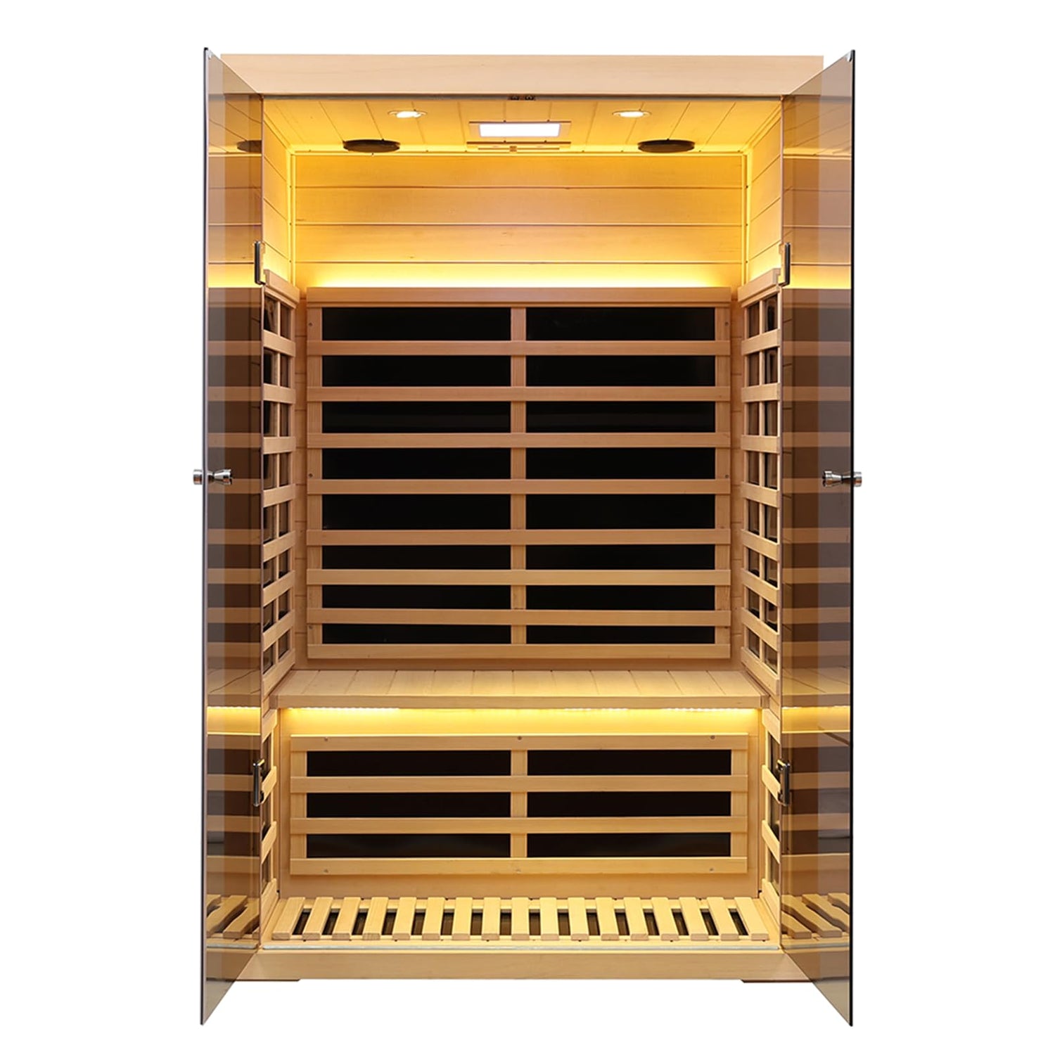 KUNSANA Hemlock 2 Person Low EMF Far Infrared Sauna, Home Indoor Sauna, Luxury Tempered Glass Doors, 1780w, App & LCD Panel Control, Bluetooth Speakers, Chromotherapy Lights, Reading Lights