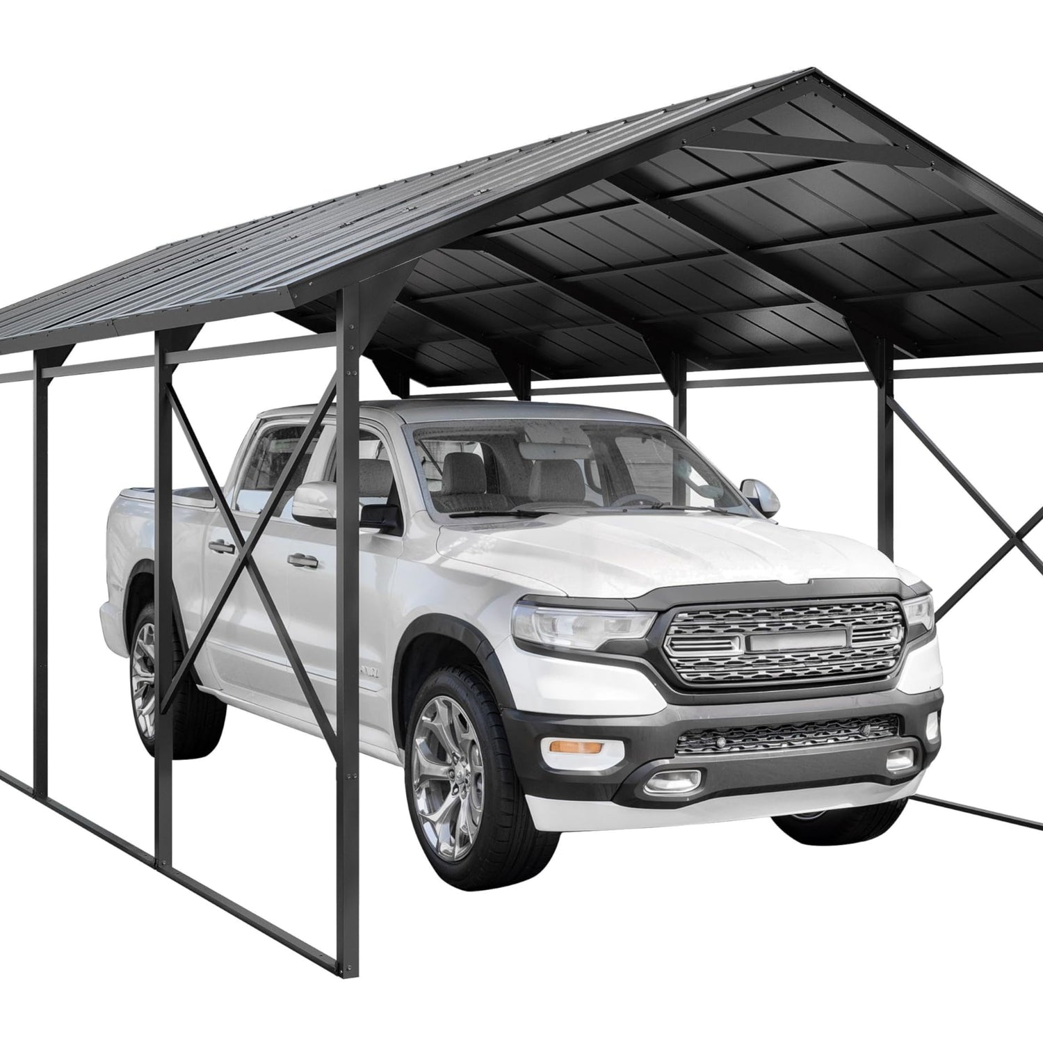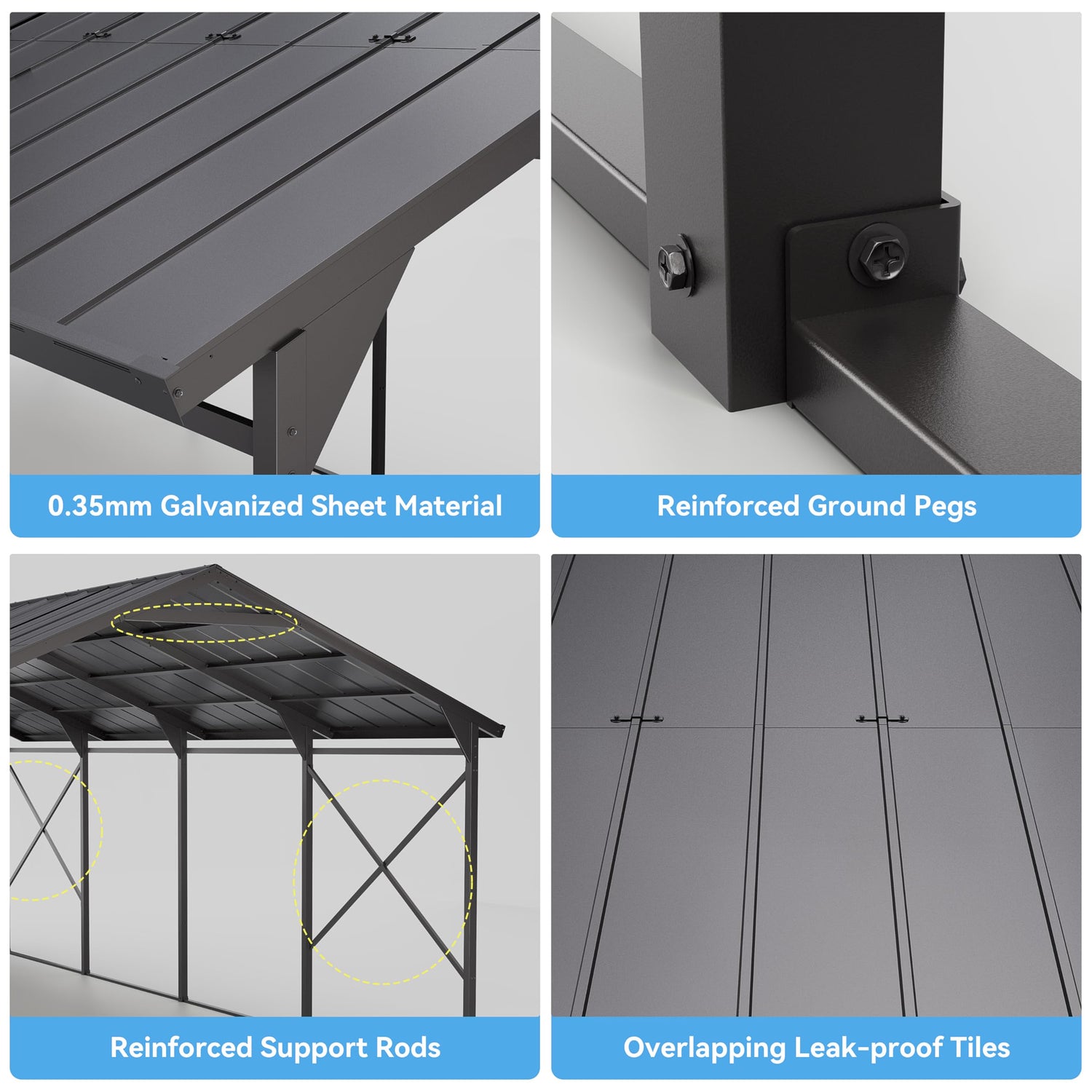 - Heavy Duty Metal Carport: This upgraded 12'x22' carport features a galvanized steel roof and powder-coated steel frame to ensure a durable, rust-resistant structure. The water-resistant top provides excellent protection against leaks during rainy days