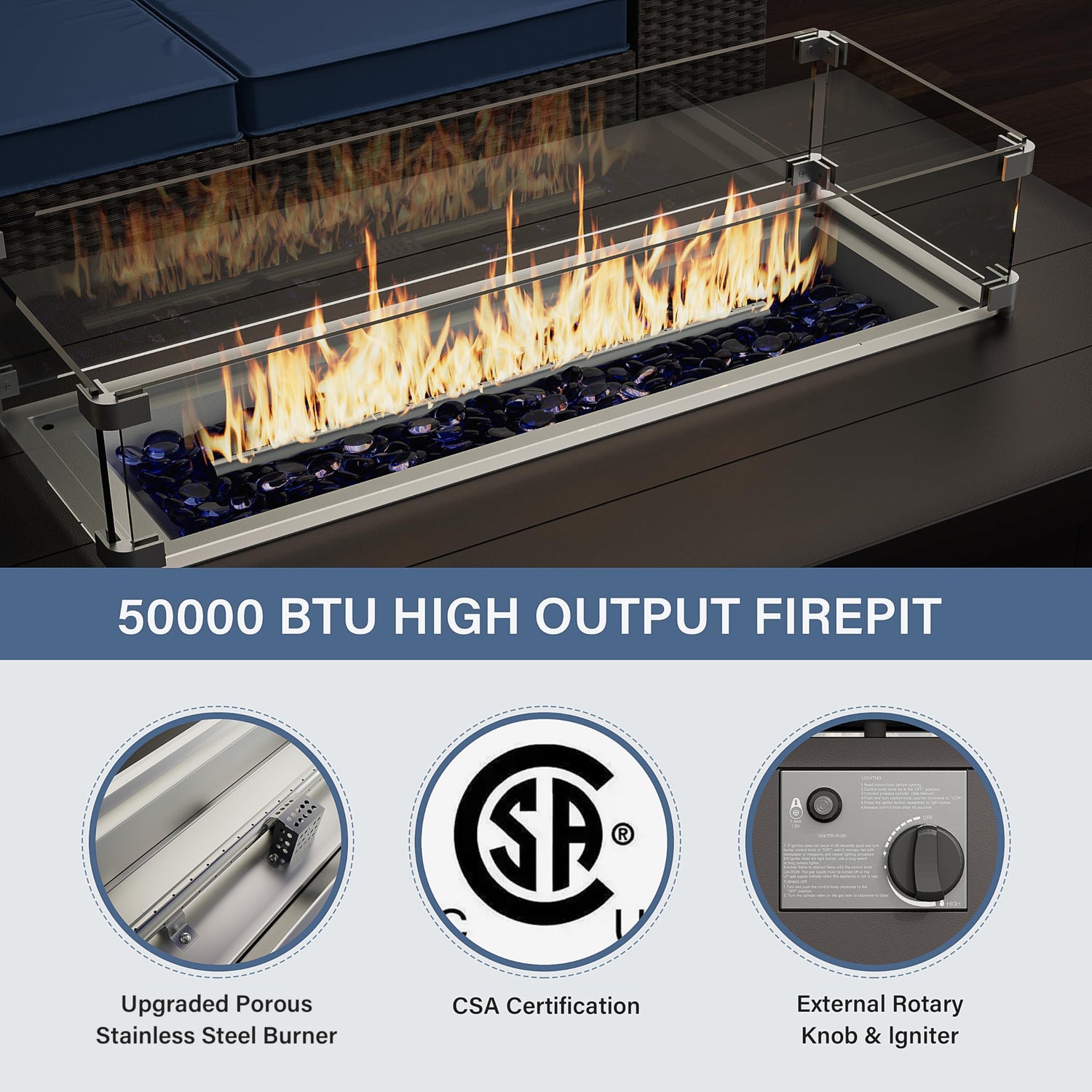 Kurapika 15 Pieces Metal Patio Furniture Set Modern Metal Outdoor Conversation Sets w/45in Propane Fire Pit Table, Patio Sectional Sofa w/5 Inch Cushion, Navy Blue