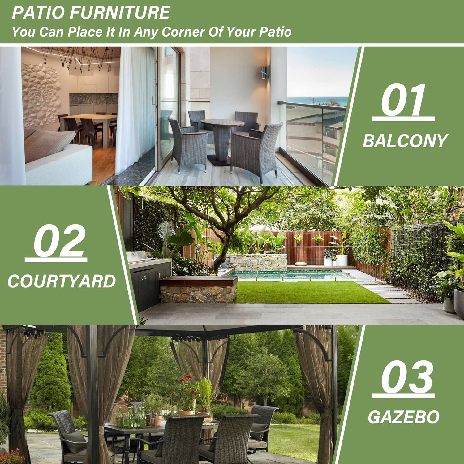 - Easy Assembly: Every wicker outdoor patio table and chair set comes with detailed installation instructions, parts and accessories are labeled with numbers. Two people can assemble this outdoor dining set for 5 in about an hour