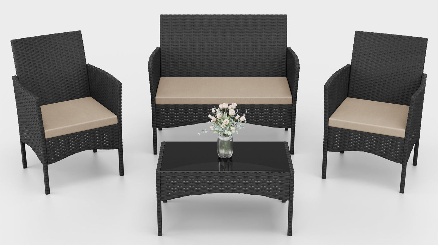- Premium Materials: The 4-piece outdoor furniture set is composed of a sturdy powder-coated steel frame and hand-woven PE rattan, which can effectively improve overall stability and durability. The covered rattan is hand-woven by experienced craftsmen for a comfortable and smooth touch, suitable for all-weather use