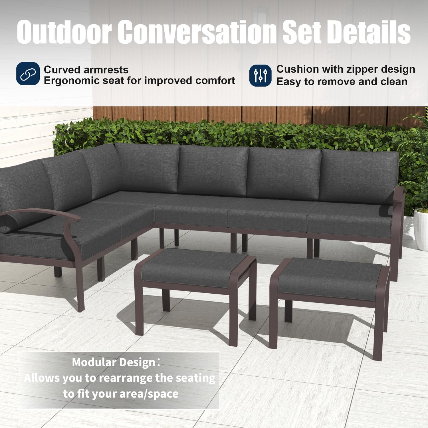 Kurapika Patio Furniture Set 8-Piece Aluminum Sectional Sofa with Armrest, Modern Outdoor Conversation Set, Metal Corner Sofa with Ottoman, Black