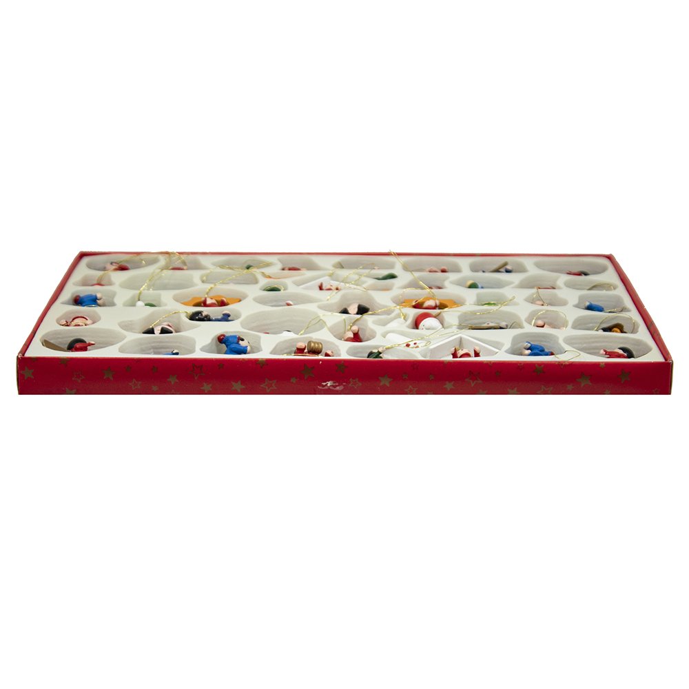 Details: Complete your holiday decor with this petite treasures wooden mini ornament set of 48 pieces from Kurt Adler. Each tiny ornament has a wooden construction and is painted in an old-fashioned style to add a vintage look to your Christmas tree. Designs features include snowmen, Santa Claus, elves, crèches, rocking horses, angels, sleds, children and much more.