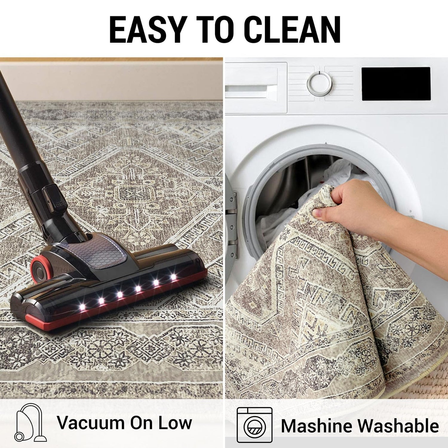 - Versatile Placement: This washable rug is perfect for bedrooms, living rooms, dining areas, entryways rugs, kitchen rugs, nurseries, offices, classrooms, or patios. Its classic oriental style with a unique seal pattern adds vintage warmth to any space