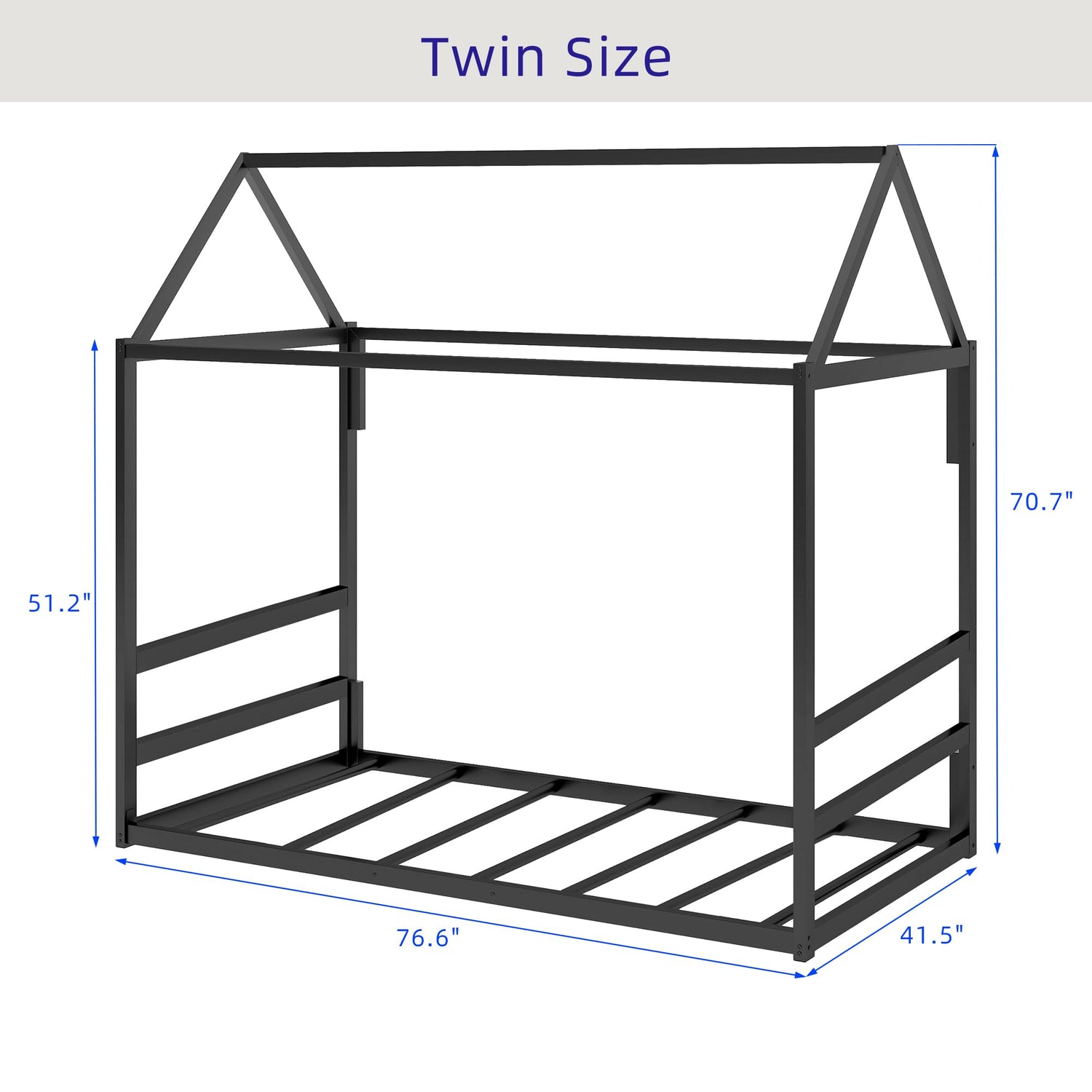 - 【Easy to Assemble】 - Size: 76.6''L*41.5''W*70.7''H. Each order of this metal house bed comes with a detailed assembly guide with all the necessary tools and is very easy to assemble. Recommend mattress thickness 6''. Note: Not include mattress.