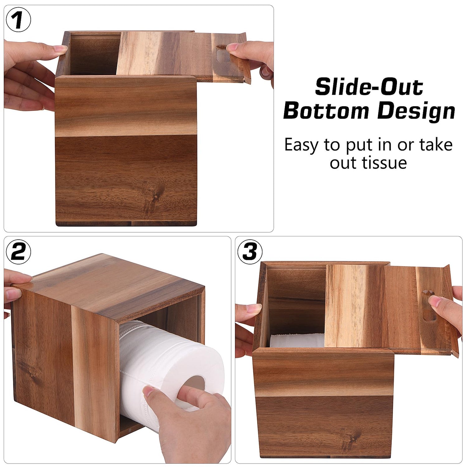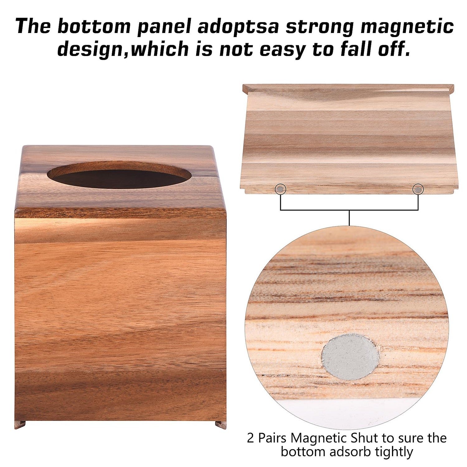 - Easy To Refill Tissue:Changing your tissues box cover has never been easier. Simply slide open the bottom of your wooden tissue box place your new tissues inside - simple, easy incredibly convenient. You’ll never have to struggle with hard to open wooden tissue box covers again