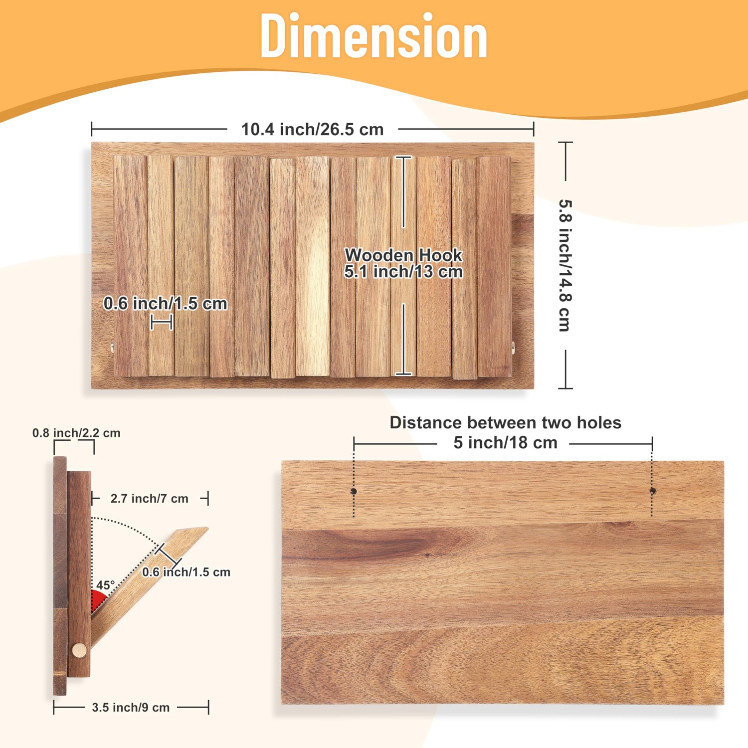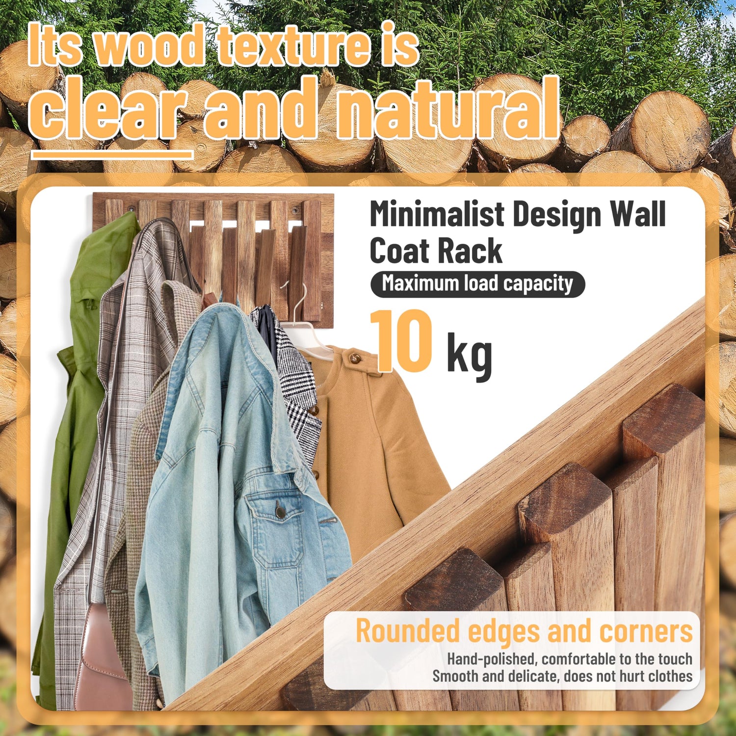 - 【Sturdy Wall Coat Rack】 The wooden frame structure is strong and solid and very suitable for hanging heavy items such as winter coat. The weight that each hook can bear is no less than 22 lbs.Especially it is finely polished to give the wood a natural luster and a smooth surface, we use the eco-friendly wood wax oil to process its surface, it will not scratch or hurt your fingers or coats, easy-to-clean surface.