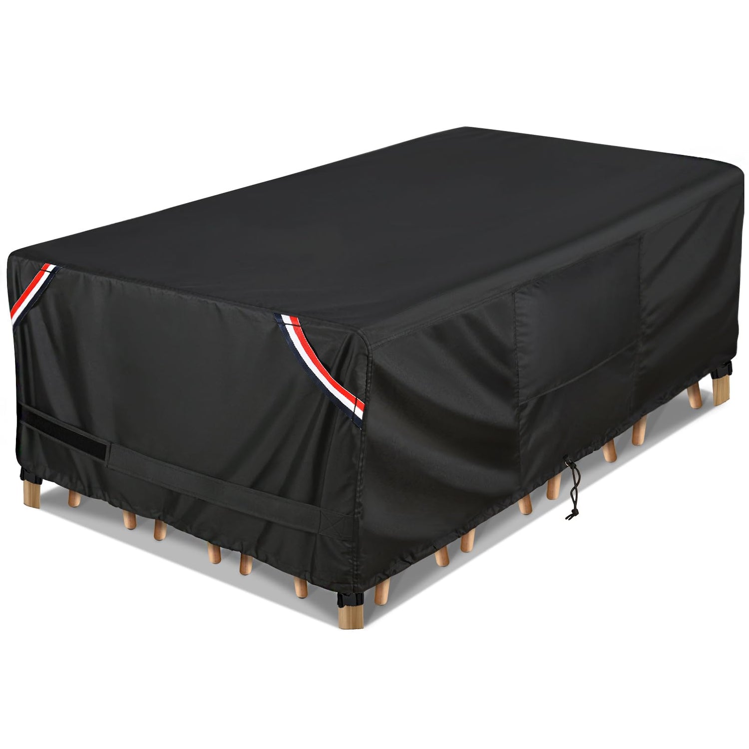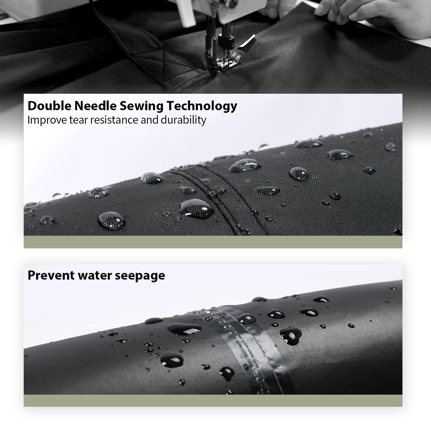 - Why won’t it leak water? - The upgraded material has passed a strict water pressure test and a surface water repellent test, and its double needle and heat sealing technology can keep your furniture dry on rainy days and extend its lifespan. Place some items under the patio table furniture covers to raise them and keep water from pooling.