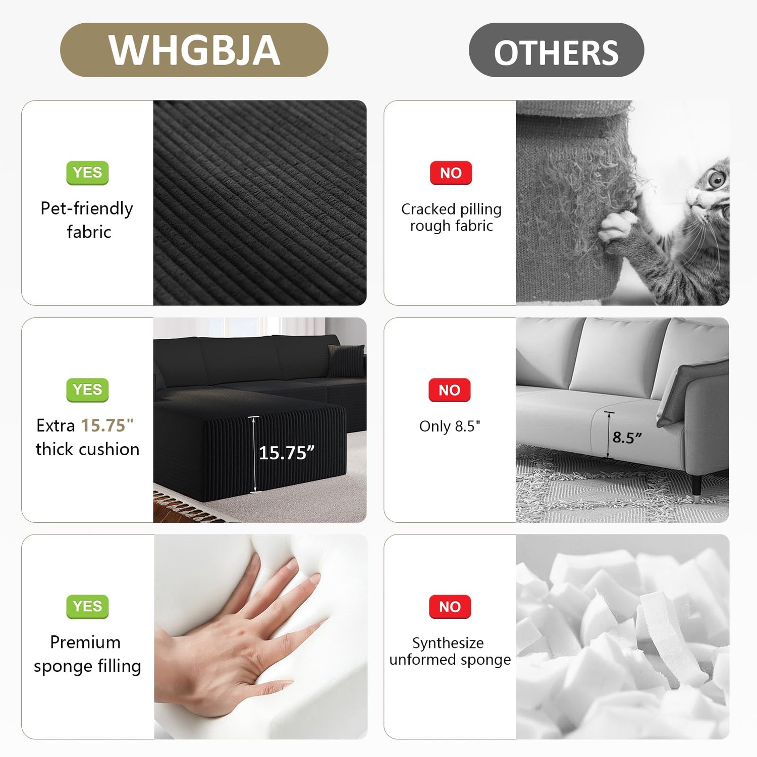 - 108‑Inch Cloud Modular Sectional: Spacious L‑shape design with chaise and two freestanding pieces delivers oversized, versatile seating for living rooms or lounges