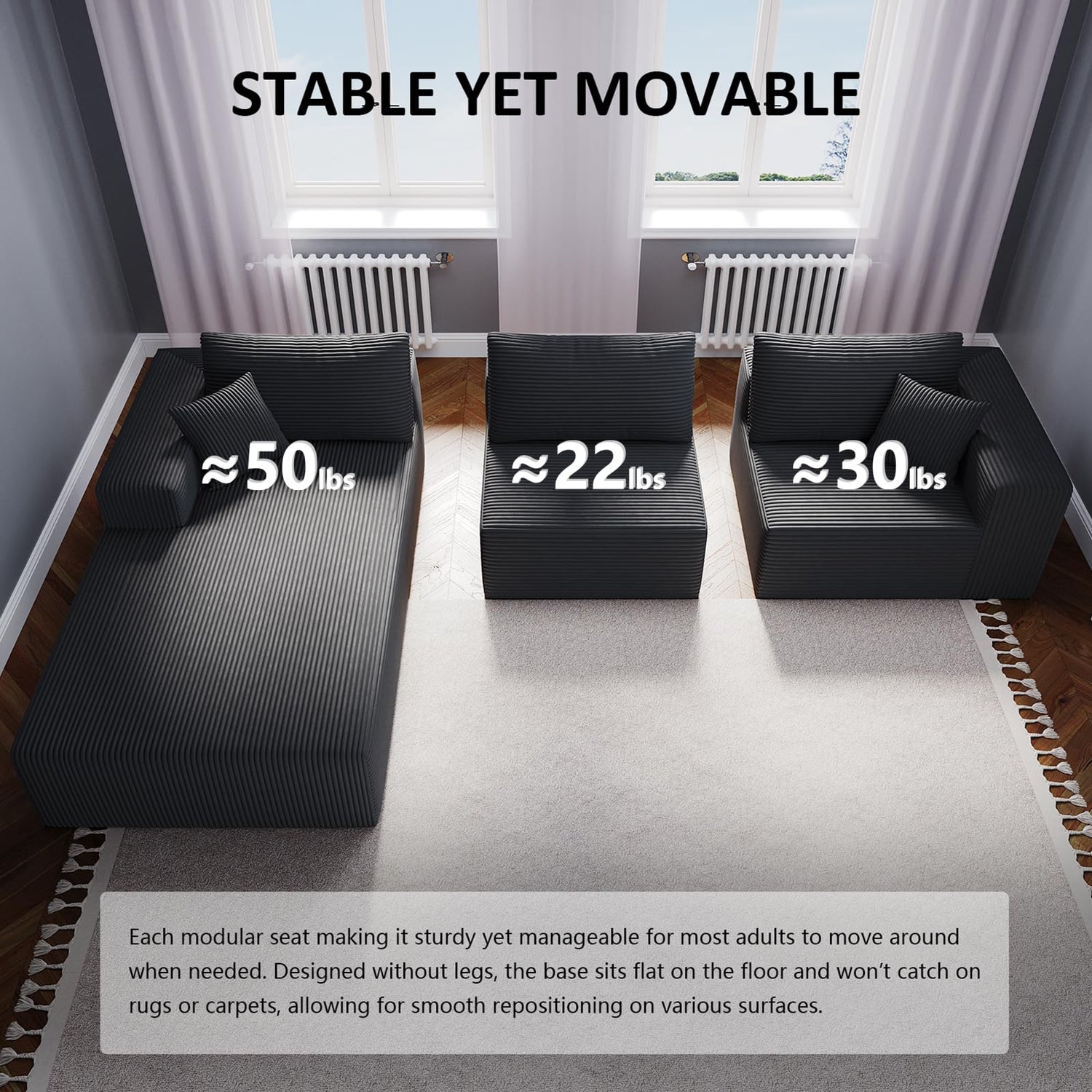 - Flexible Configuration: Modular layout supports multiple setups—combine pieces for lounging, entertaining, or easily rearrange to suit space needs