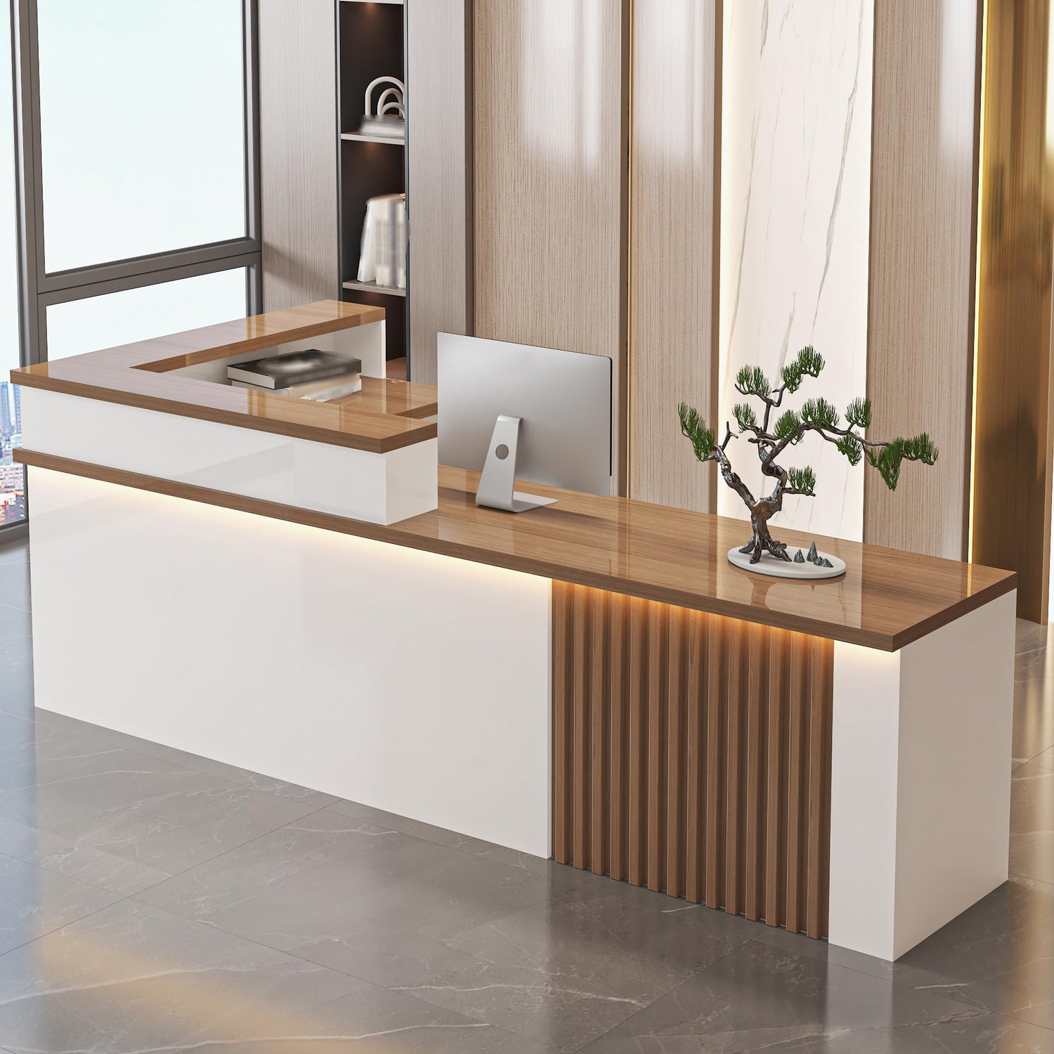 - Modern Reception Desk with LED Lighting: This reception desk with counter features built-in LED lights and a sleek design, creating a professional and inviting atmosphere.Ideal for use as a front desk reception counter in offices,salons,or retail stores.