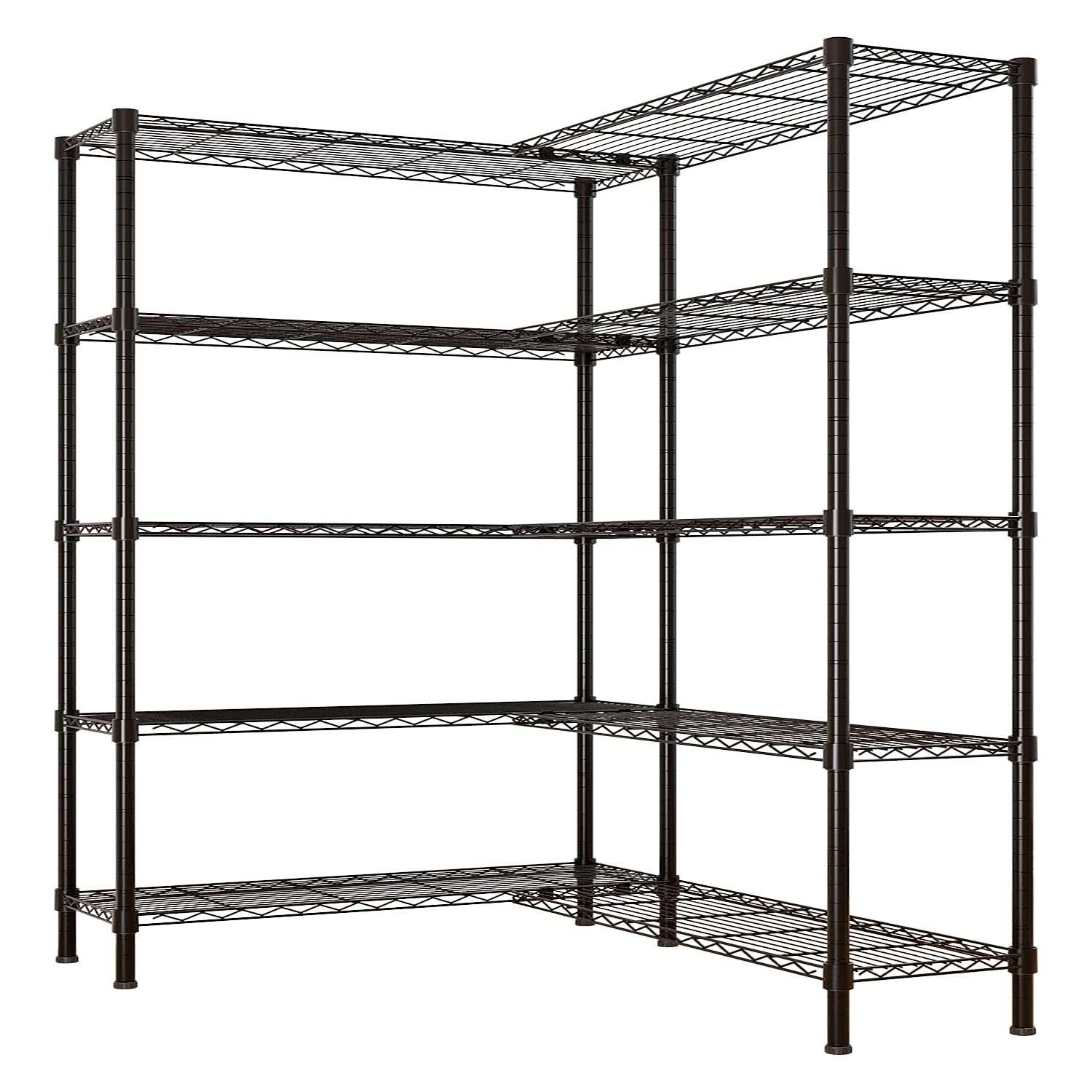 L Shaped Storage Shelves 1500LBS Standing Shelf Units NSF Wire Corner Shelving 5 Tier Metal Organizer Rack Adjustable Heavy Duty Garage Shelf for Kitchen Bathroom Warehouse Pantry Closet Utility Rack