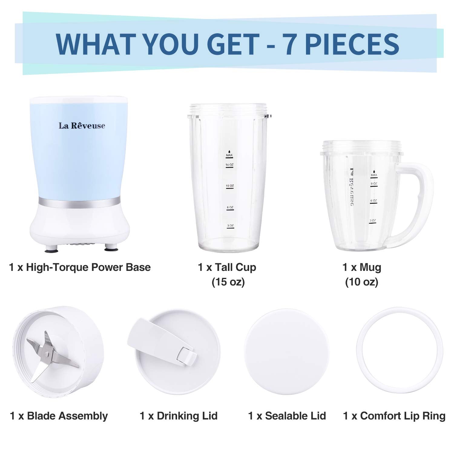 La Reveuse Personal Size Blender 250 Watts Power for Shakes Smoothies Seasonings Sauces with 1 Piece 15 oz Cup,1 Piece 10 oz Mug,BPA-Free (Sky Blue)