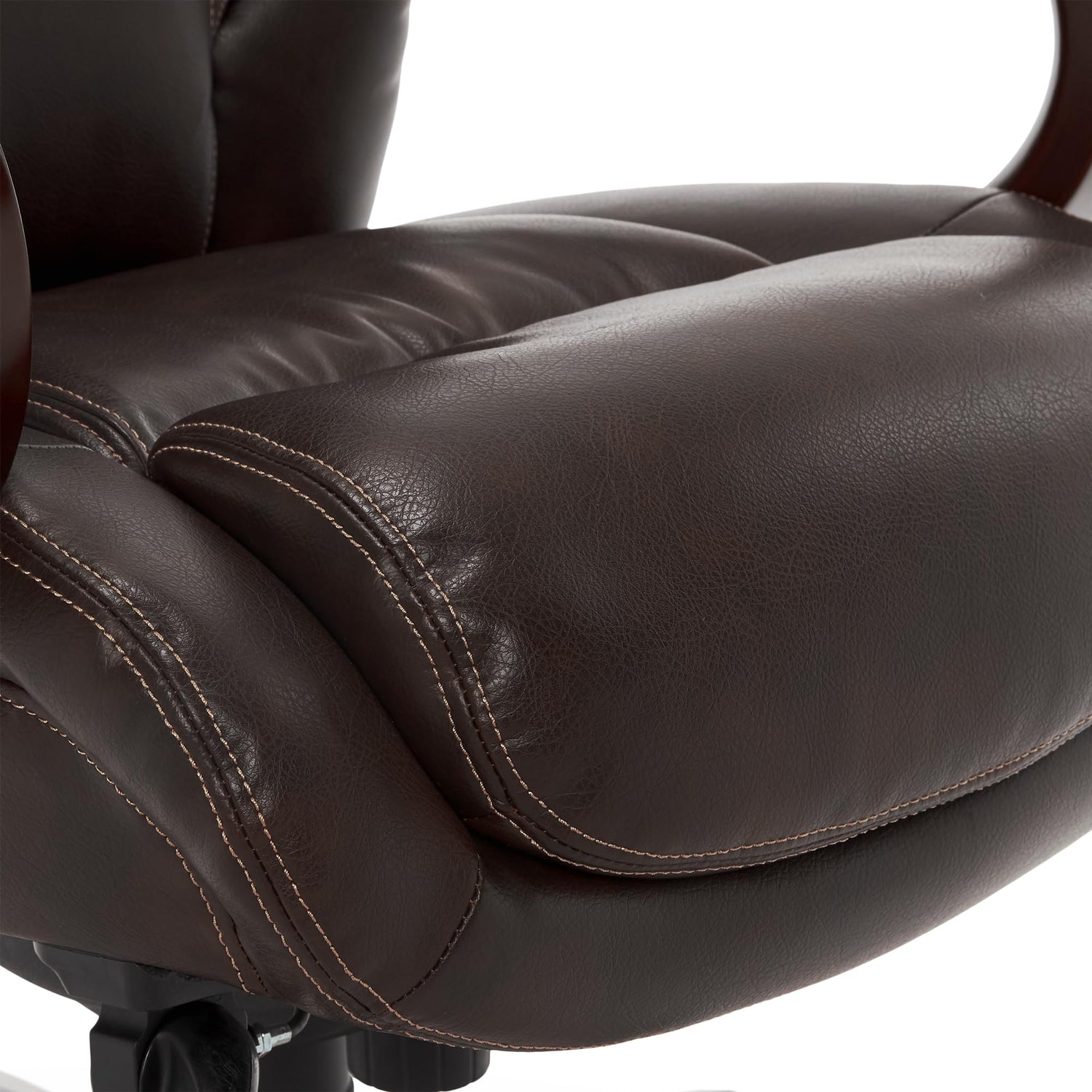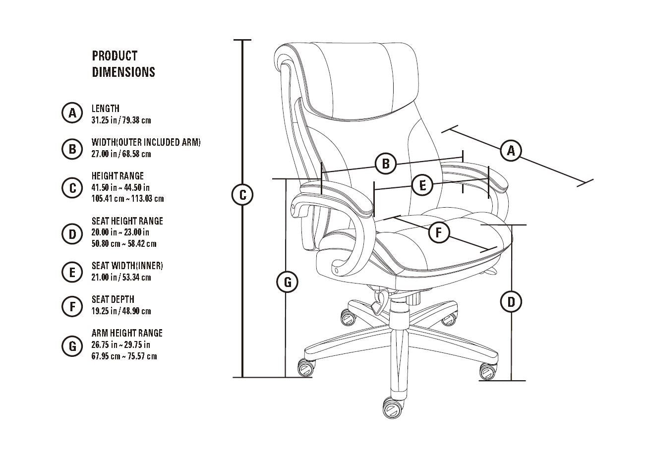 Details: Experience advanced comfort and exceptional support with the La-Z-Boy Bellamy Executive Office Chair. This ergonomic office chair is designed with Comfort Core Plus memory foam cushions—an advanced layering system that offers zone-based support with cushioning in the areas you need it most. The strategically placed plush body pillows and padded headrest combine to provide neck support and minimize pressure points, helping you feel more rested after long days at work. A contoured lumbar area provides lower back support to alleviate discomfort, while the waterfall seat edge helps reduce leg pressure and promote circulation. The ergonomic chair is fully adjustable for a personalized fit, including height, tilt, and recline settings for optimized body alignment. It is constructed with a thick plywood sub core, reinforced back bar, and heavy-duty casters for reliable and long-lasting durability. Rich coffee brown bonded leather and hand-sculpted wooden arms create an elegant blend of traditional style and modern performance that is ideal for any office, home, or entertainment space. The casters are intended for use on carpet and not recommended for use on tile or hardwood floors. LA-Z-BOY® is a trademark of LA-Z-BOY® Incorporated and is used under license to Living Style (Singapore) Pte. Limited.