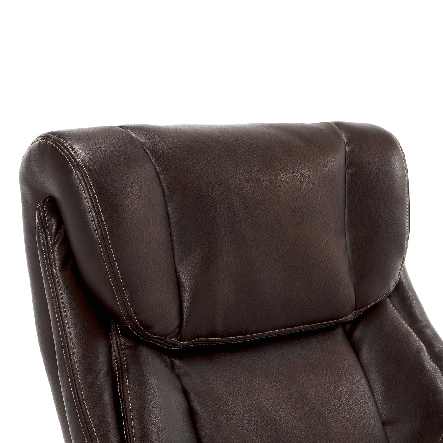 - EXECUTIVE STYLE: Brown bonded leather upholstery and darkly stained wood complement any classic office space