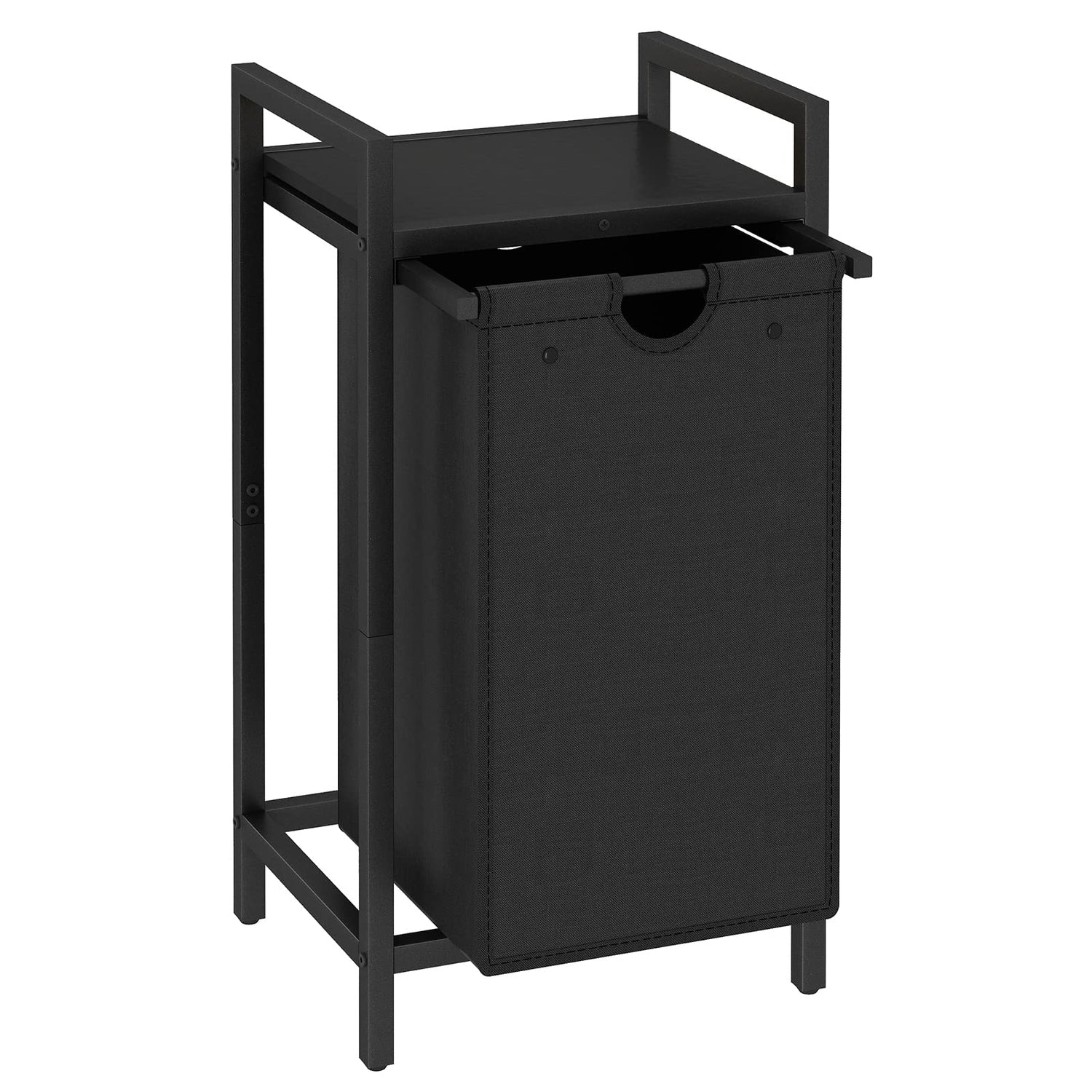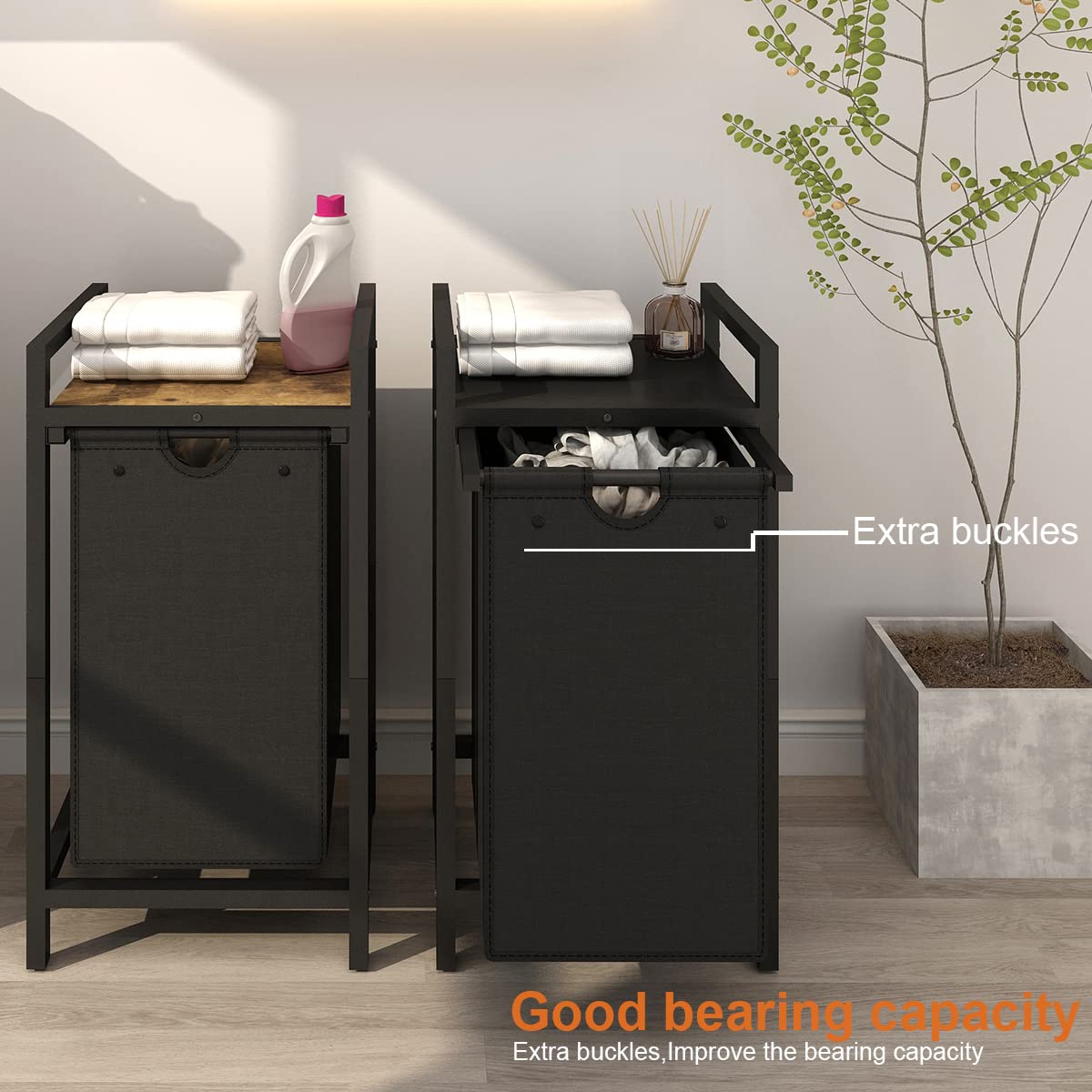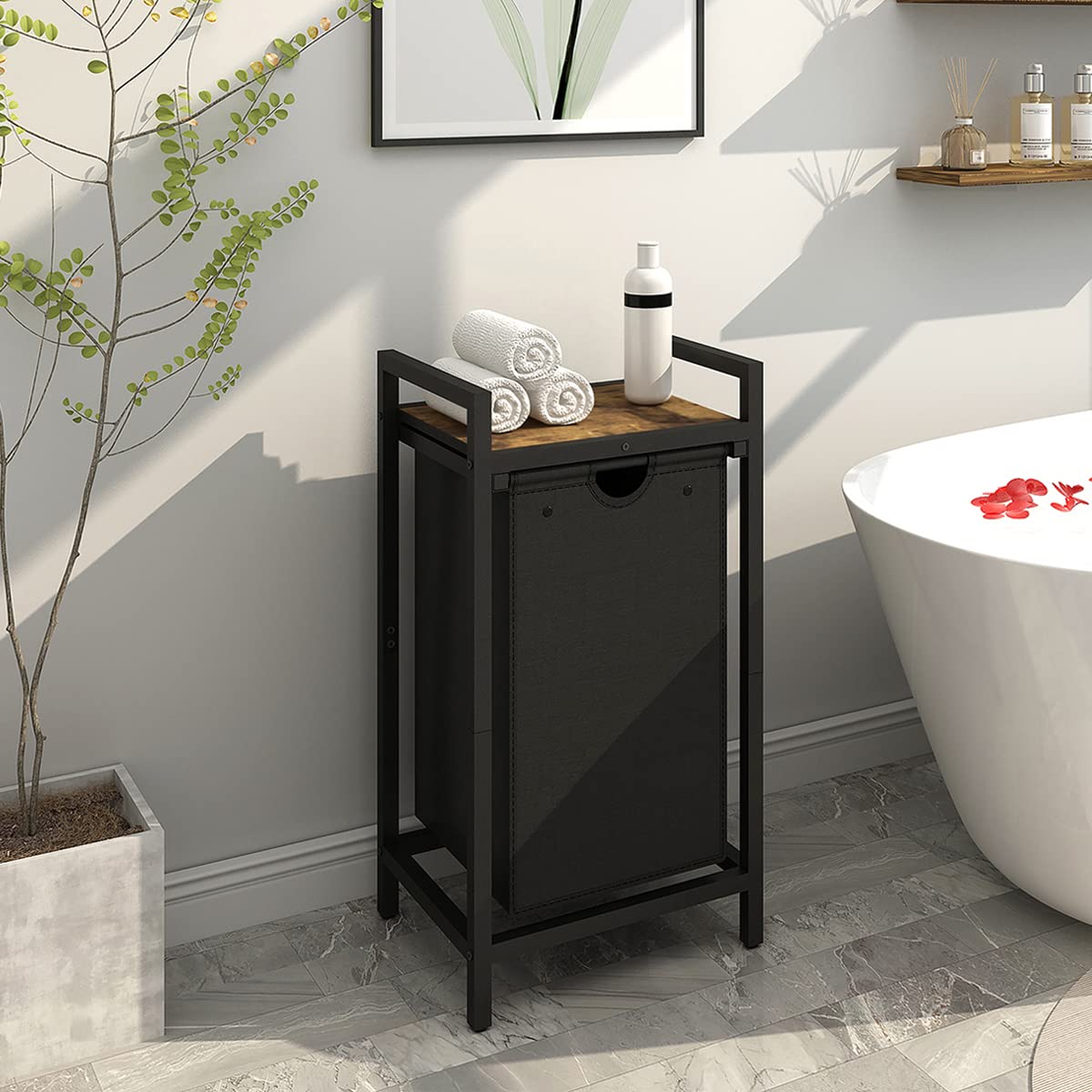 - Bicolor Top Storage Shelf : The top shelf of laundry hamper adopts rustic brown and black double-sided color wood panel design, you can assemble it into your favorite color and style. Top tabletop also provide a extra storage space for towels, shampoo, laundry detergents or other bathroom necessories.