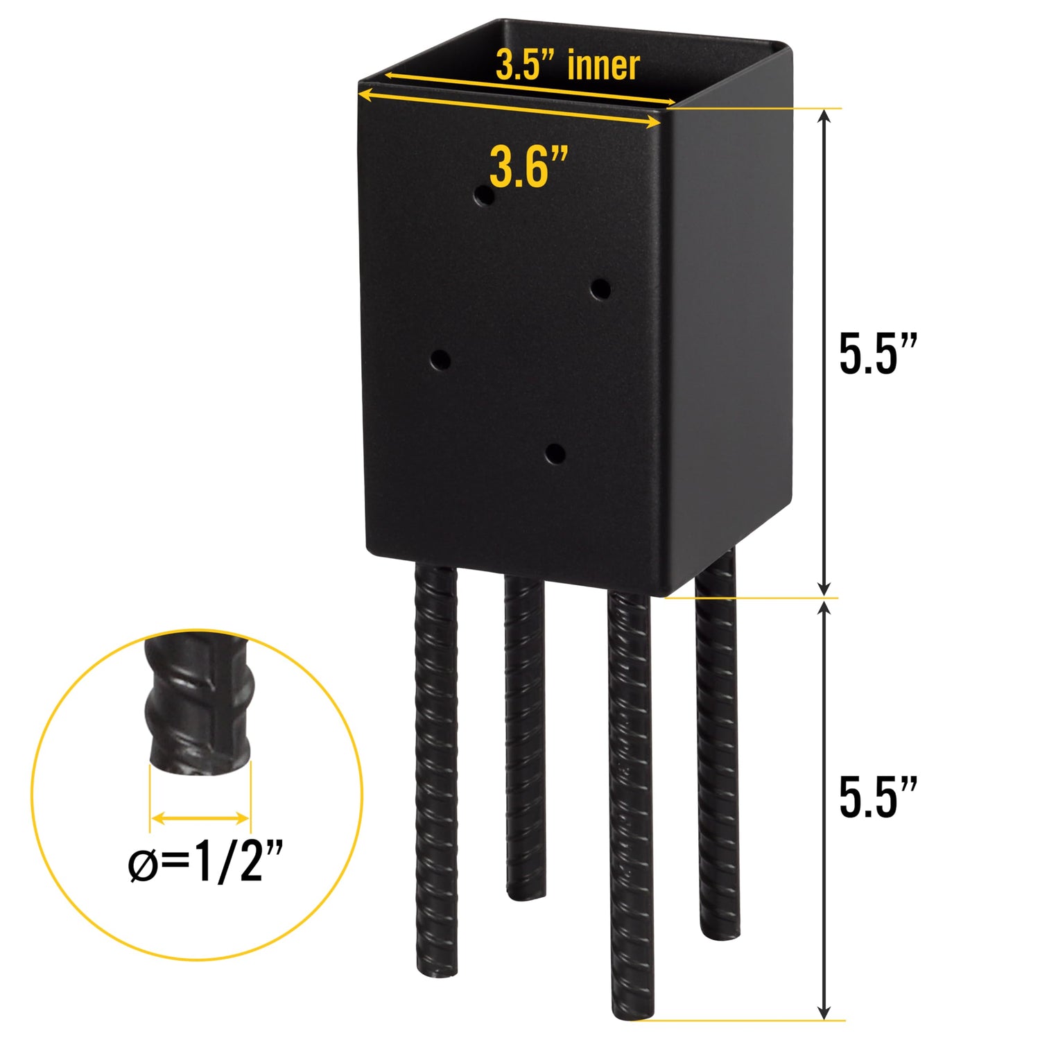 - Firmly Fixed Under The Concrete Floor: Our 4x4 post Anchor Designed with 4 anchor rods 1/2" in diameter and 5 1/2" in length, making it firmly fixed in the concrete layer.