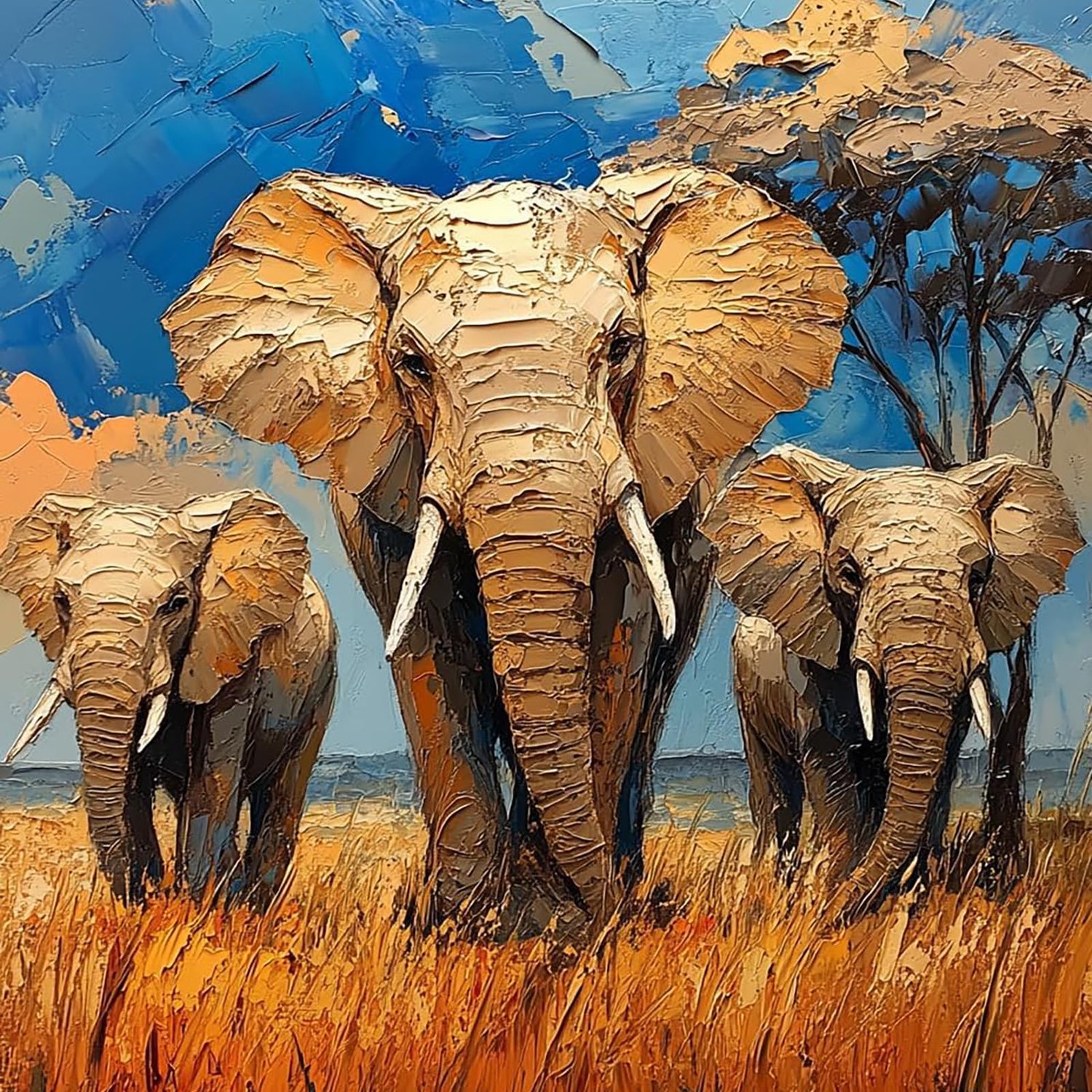 LAENAKR Paint by Number, Elephants in African Savannah, Adult Crafts Adults' Paint-by-Number Kits, Room Decor Gift for Birthday Festival (16x20 inch, No Frame)