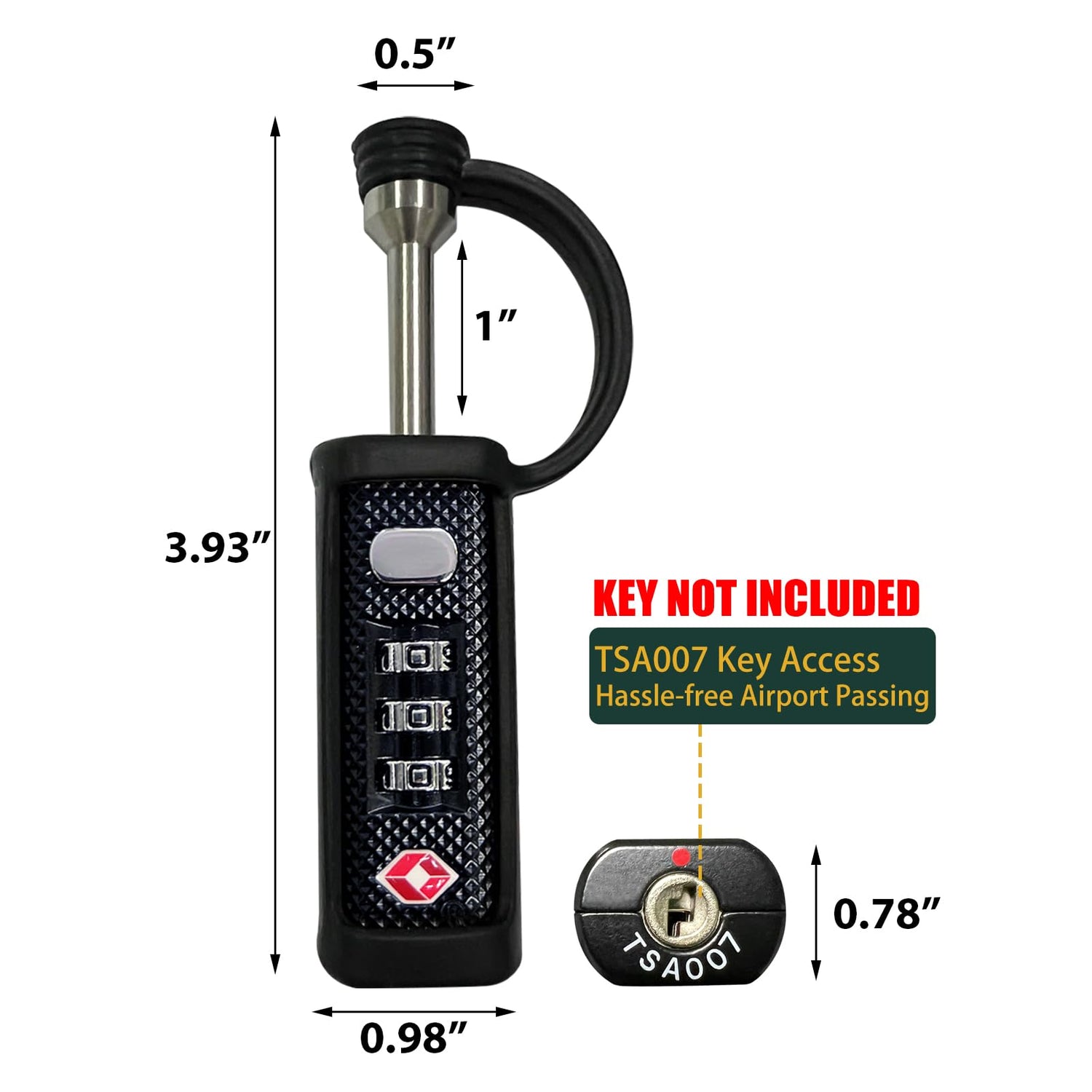 • 1. Hard pistol cases lock size 3.9”x 0.95”x 1.05”inches. TSA Key Type: TSA007 (KEY NOT INCLUDED). The hard pistol cases firearm lock pin is 1.05"(L)x0.23"(W). Our TSA approved hard gun case locks are made from high quality alloy, have a protective rubber sleeve and a heavy duty cut resistant single shaft exterior that is durable enough to take a huge beating. Whether you use the combo gun case lock indoors, or travel, rest assured that these gun case padlocks will deter any opportunistic thief.