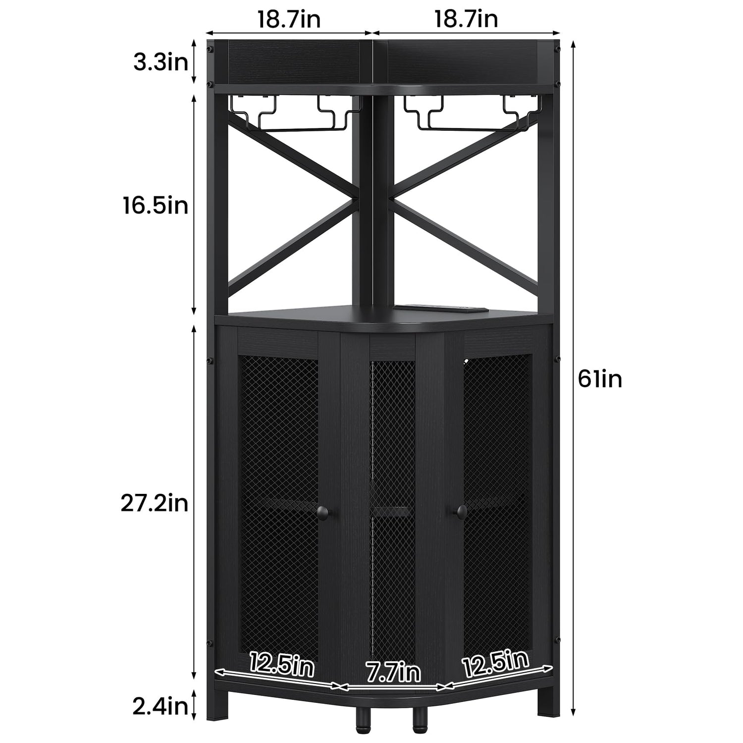- Multifunctional Corner Bars - You can use this corner bar cabinet in several ways to maximize your living space. The vertical corner wine has a unique appearance and industrial design elements, perfectly matching most styles of home furniture, It offers ample storage and display space for kitchens, living rooms, lounge, and dining room.