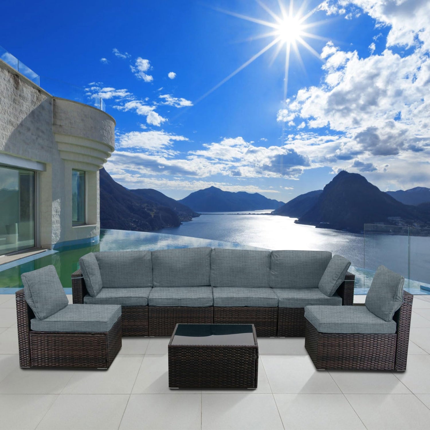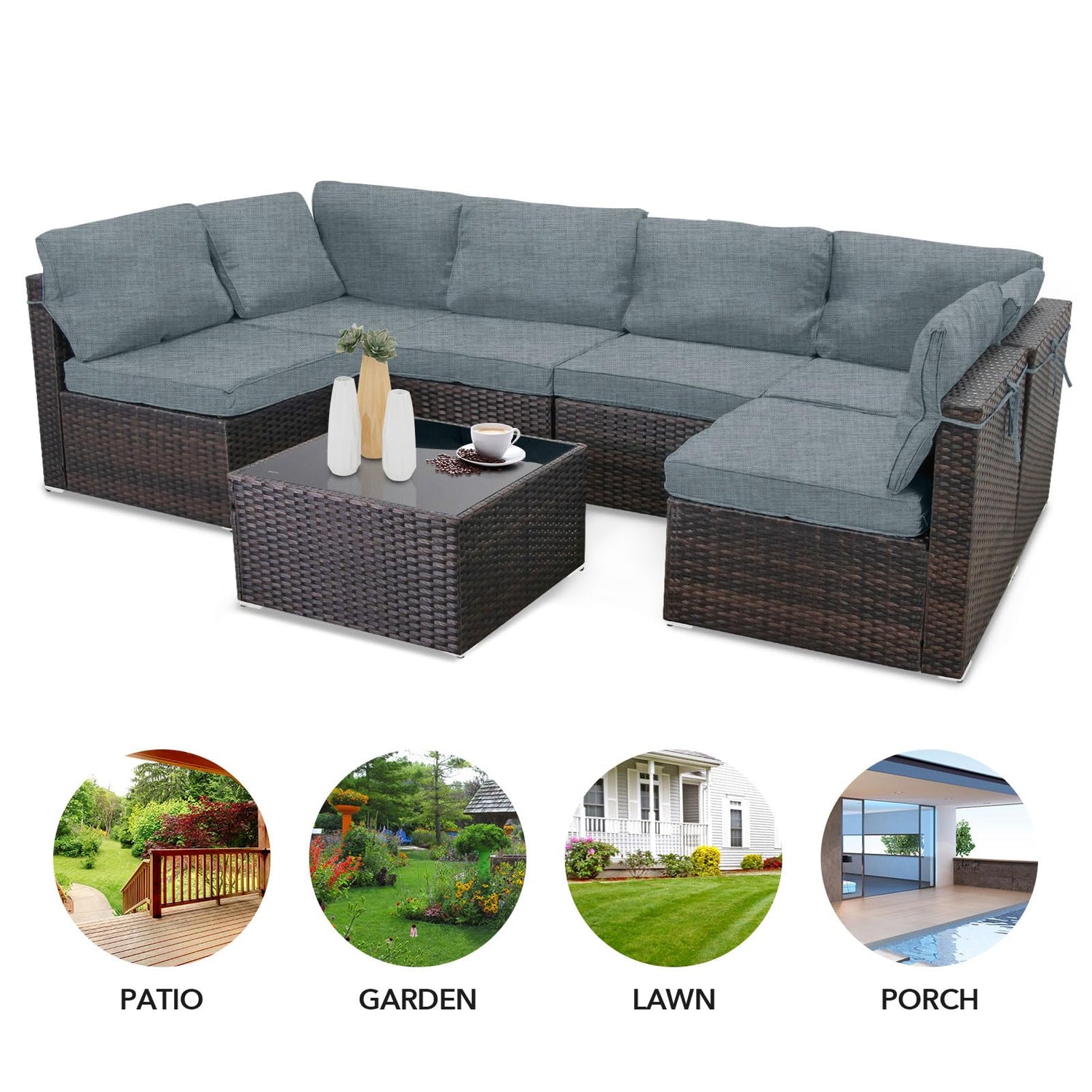 LAFWELL 7 Pieces Outdoor Patio Furniture Sets,Rattan Conversation Sectional Set,Manual Weaving Wicker Patio Sofa with Tea Table