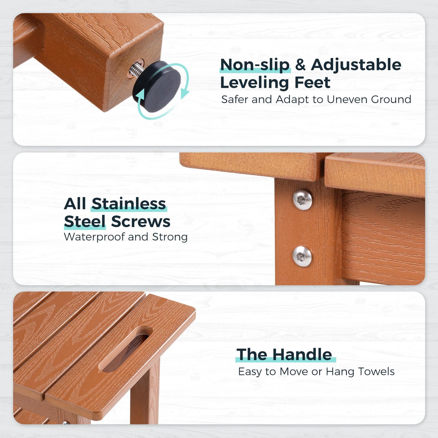 LAHAAP 35" Shower Bench, Waterproof Poly Lumber Shower Stool for Shaving Legs, Shower Chair Seat Holds up to 400lbs, Bathroom Bench for Inside Shower, Non-Slip (Brown)