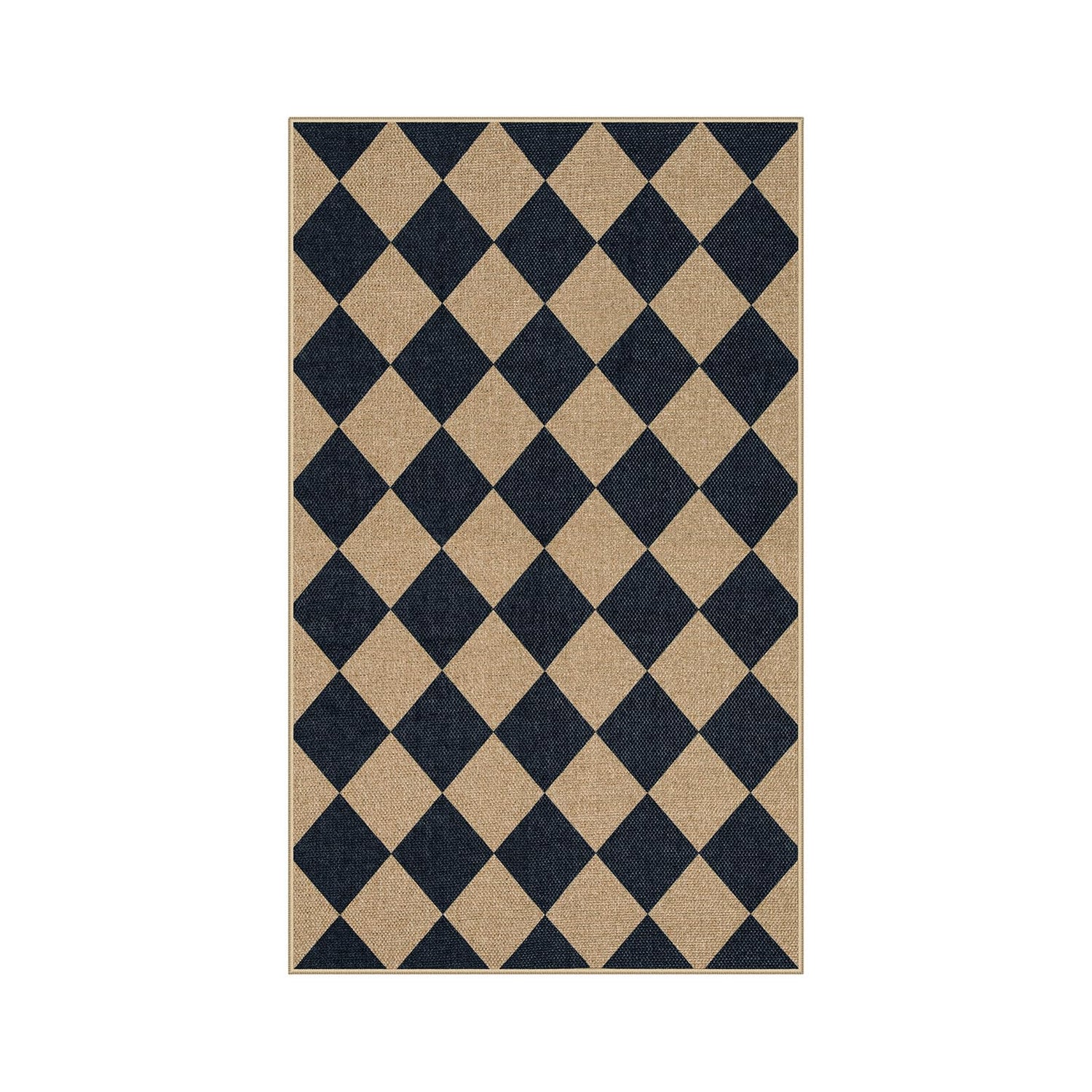 Lahome Checkered Easy Jute 3x5 Outdoor Patio Rug, Washable Rugs for Entryway Diamond Indoor Outdoor Living Room Carpet, Farmhouse Neutral Non Slip Black Door Carpet for Backyard Bedroom