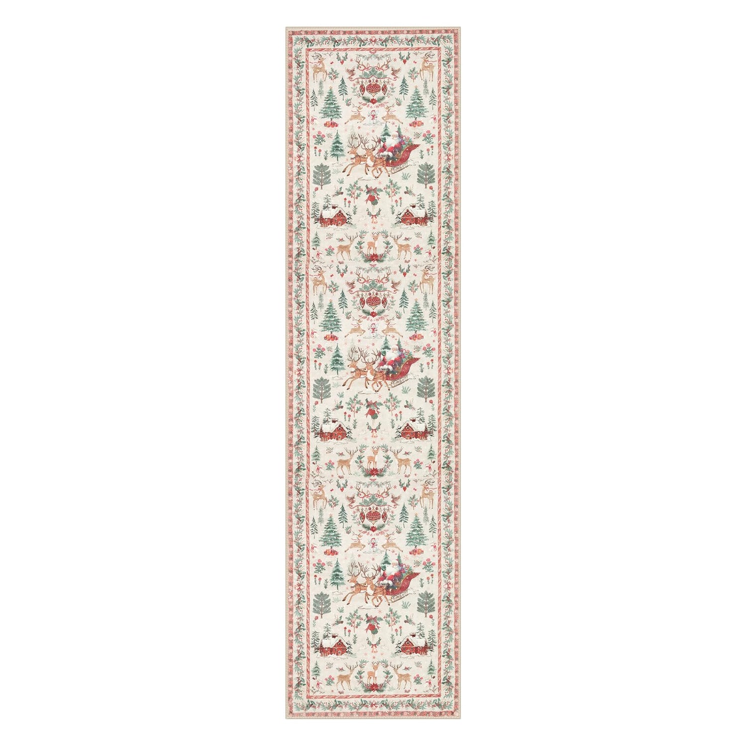 Lahome Christmas Runner Rug 2x8 Beige Rug Runners for Hallways Non Slip,Washable Kitchen Bathroom Runner Rug,Soft Christmas Tree Santa Claus Carpet Runner for Entryway Holiday Decor(2'x8',Beige)