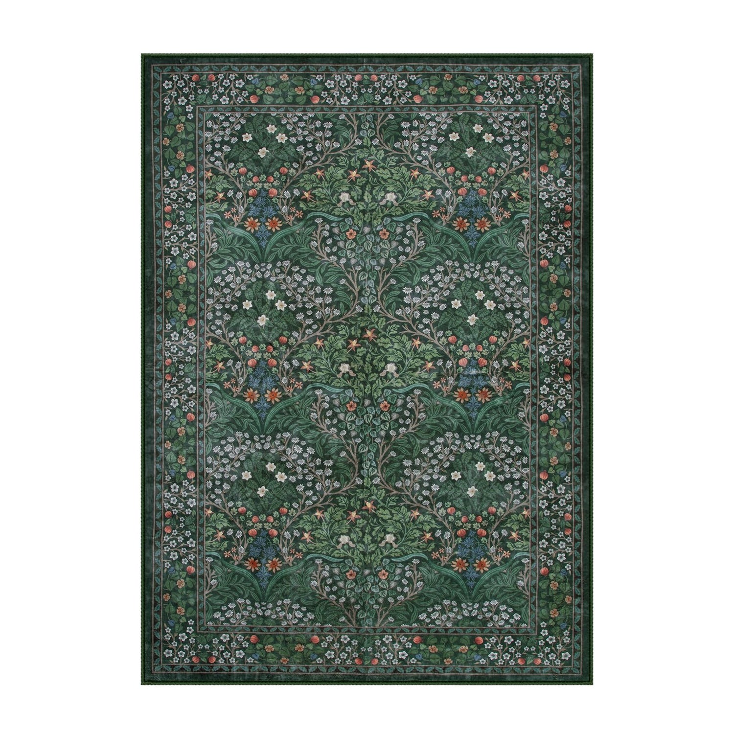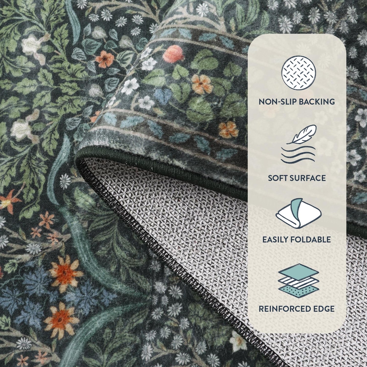 Lahome Floral Washable Rugs 5x7, Soft Green Rugs for Bedroom Living Room, Boho Non Slip Low Pile Forest Stain Resistance Large Throw Carpet for Farmhouse Dining Room Office, Dark Green