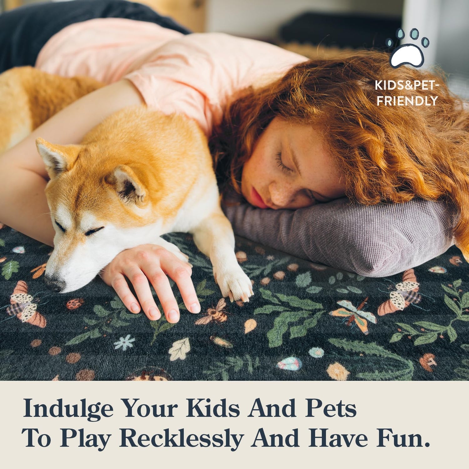 - [Insect Botanical Rug] - Inspired by nature, features soft colors and intricate patterns of botanical, insects, butterflies, flowers, mushrooms, and pine cones. It brings a warm, cozy atmosphere to any room, capturing the beauty of the nature