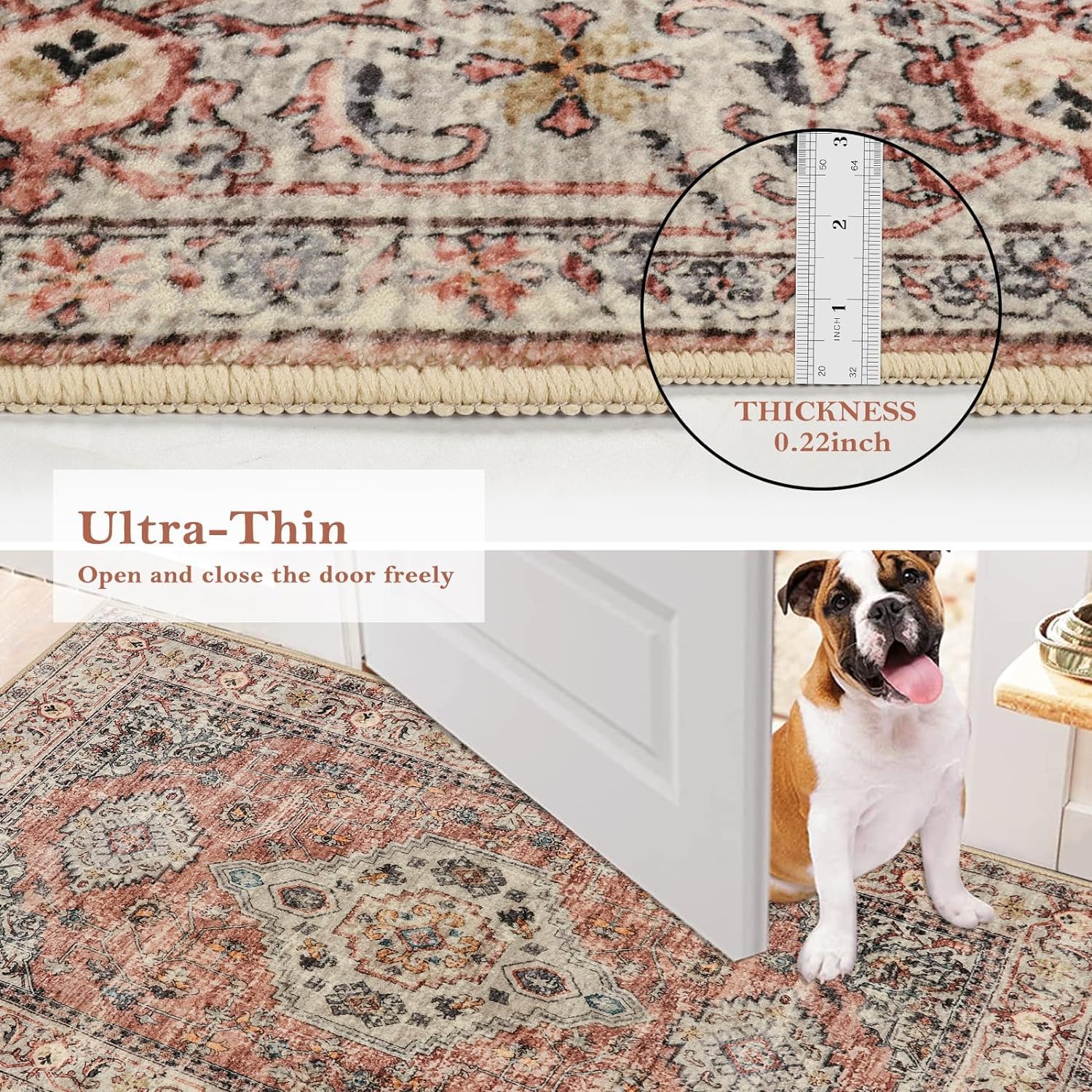 Lahome Oriental Hallway Runner Rug, 2.5x8 Kitchen Runner Non Slip Ultra-Thin, Soft Washable Hallway Rug Distressed Non Shedding Long Carpet for Entryway Laundry Room Bathroom, Peach/Orange