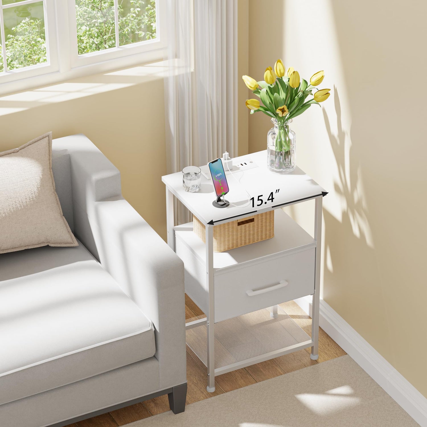 LAKEMID Nightstands Set of 2 with Fast Charging Station and Drawer, End Table Bedside Table with 20 Colors LED Light Strip and 2 Layers Shelf for Bedroom Living Room Sofa Couch (White)