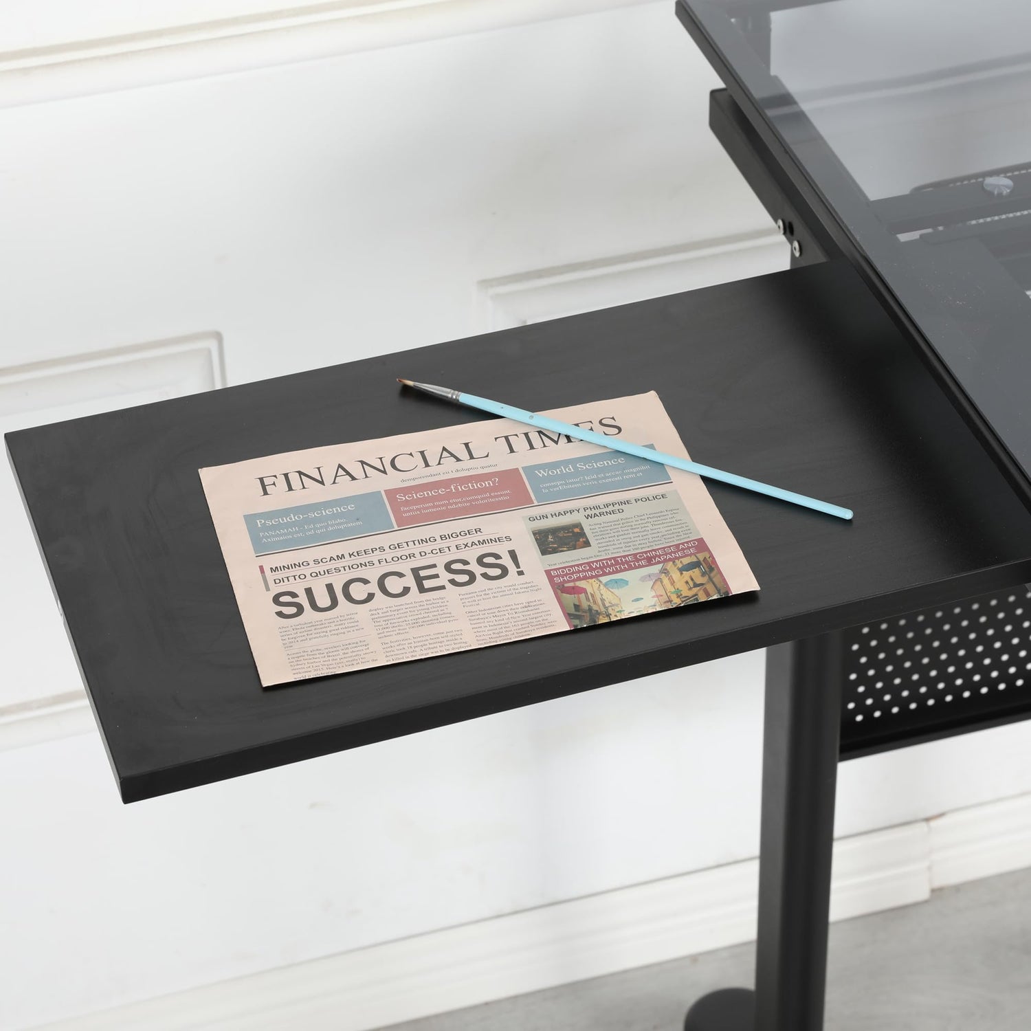 Lambgier Adjustable Tempered Glass Drafting Table - Art Desk Drawing Table, Black Upgraded