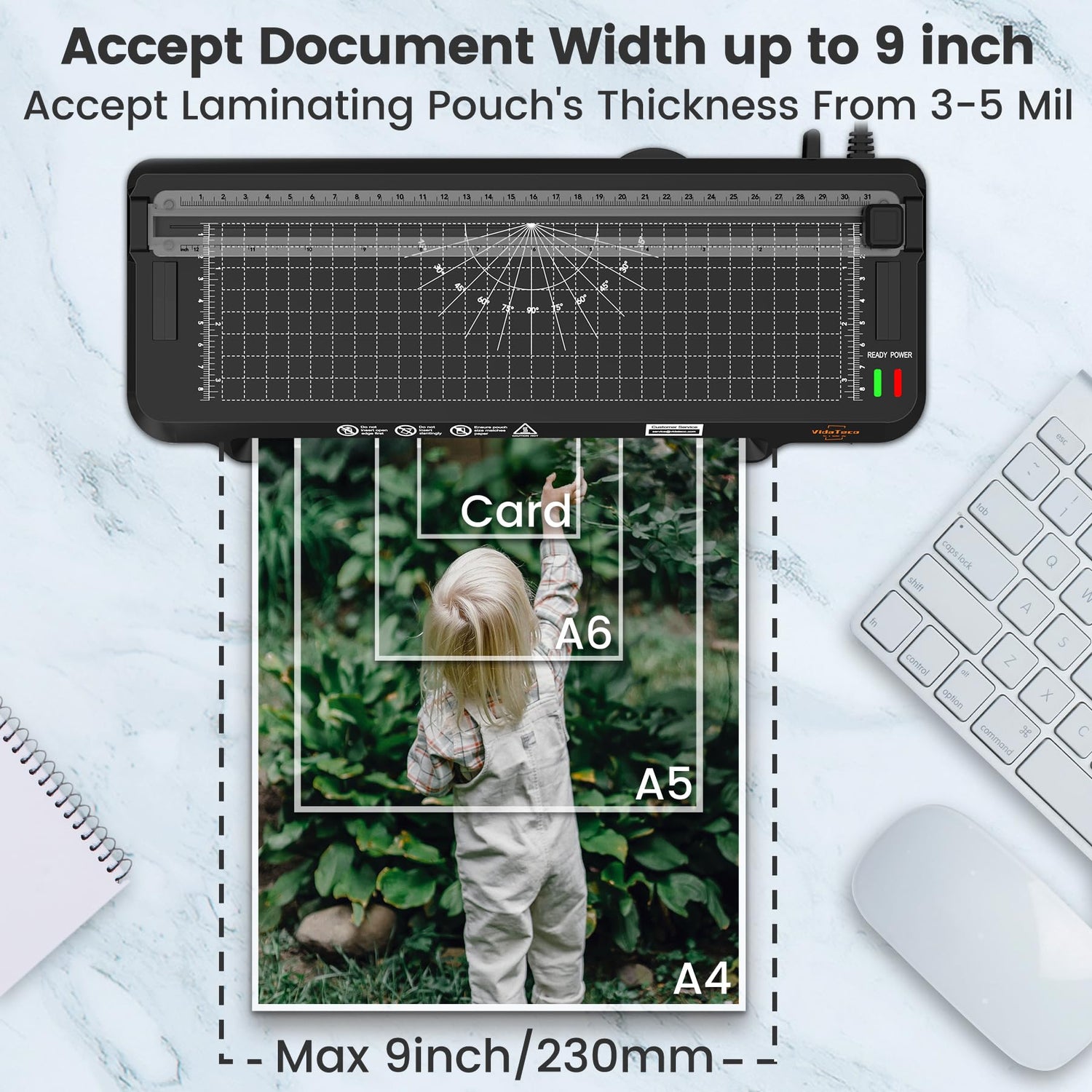 Laminator Machine,4 in 1 VidaTeco 9-inch Laminating Machine,2-Min Preheat,Thermal Cold Laminator with Laminating Sheets 20 pcs,Built-in Paper Cutter,Corner Rounder,Lamination for Home School