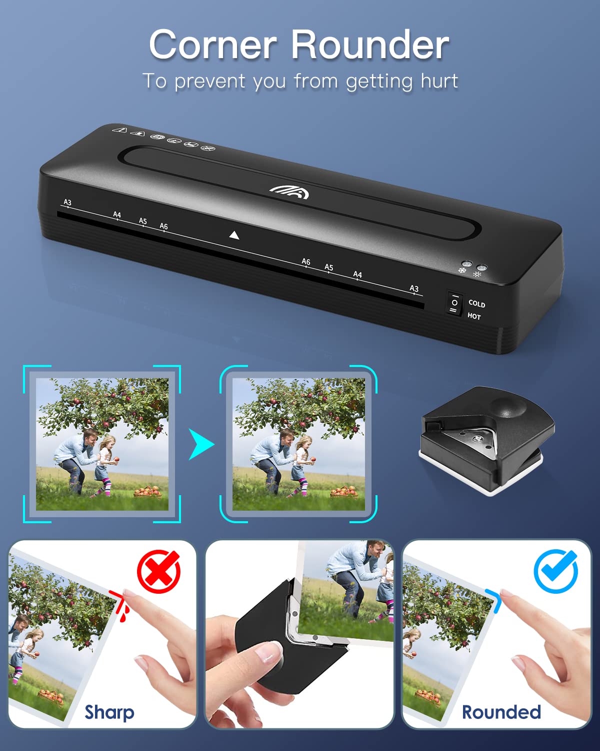 Laminator Machine A3 Laminating Machine - Laminator Machine 11x17, Cold Thermal Laminator with Cutter and Corner Rounder, 13 Inch Laminator Machine with Laminating Sheets for Home Office School