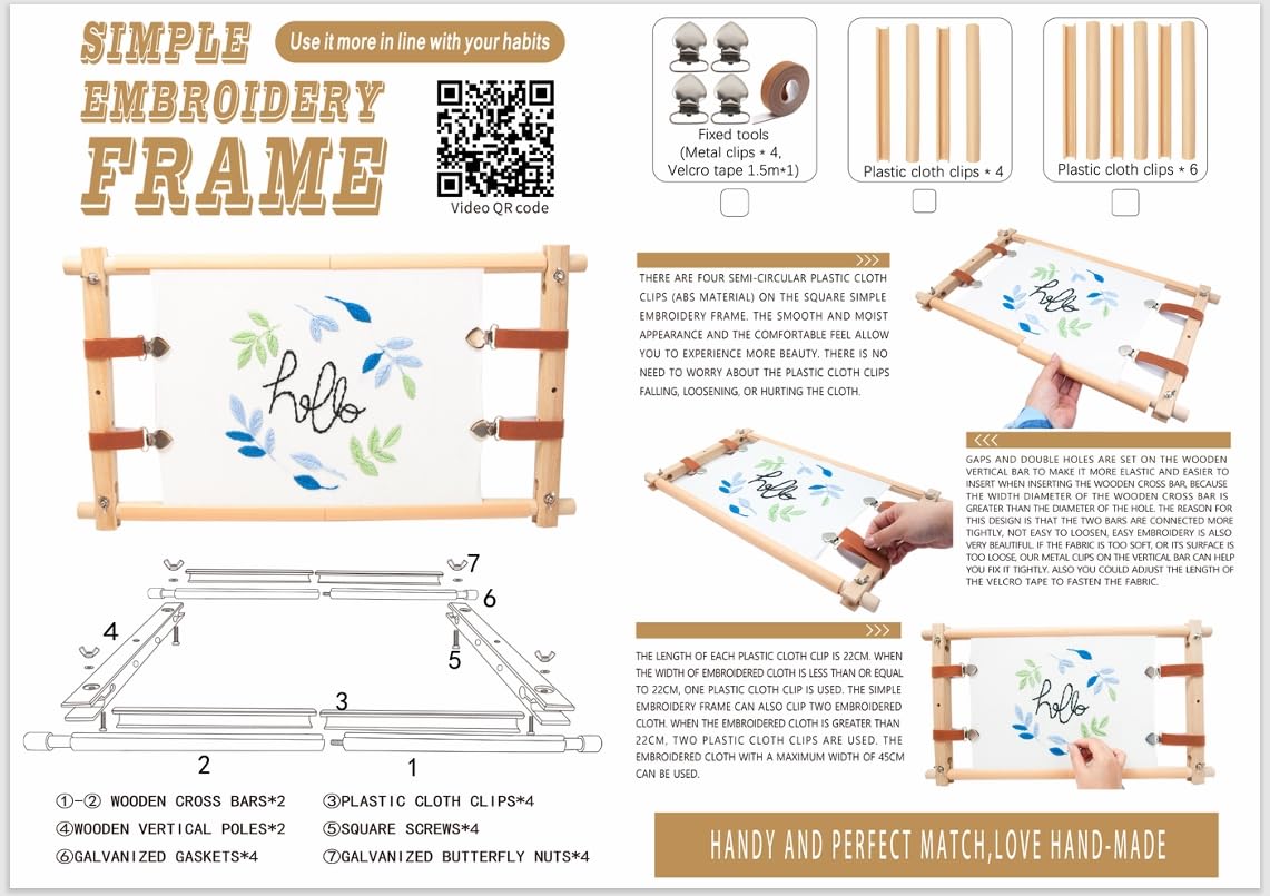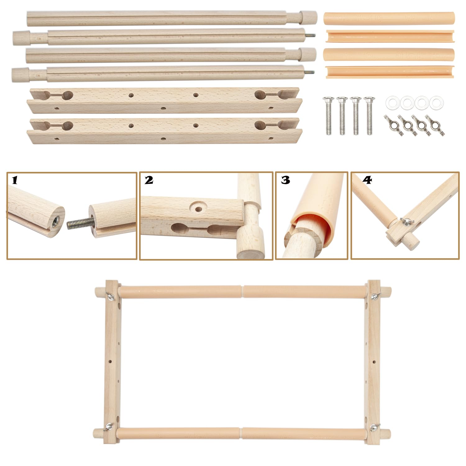 - This needlework frame is made of durable beech wood, ensuring long-lasting durability. The smooth and glossy finish provides a comfortable and enjoyable stitching experience without hurting your hands and fabric. The polishing process gives the frame a luxurious look and feel that adds to its overall appeal.