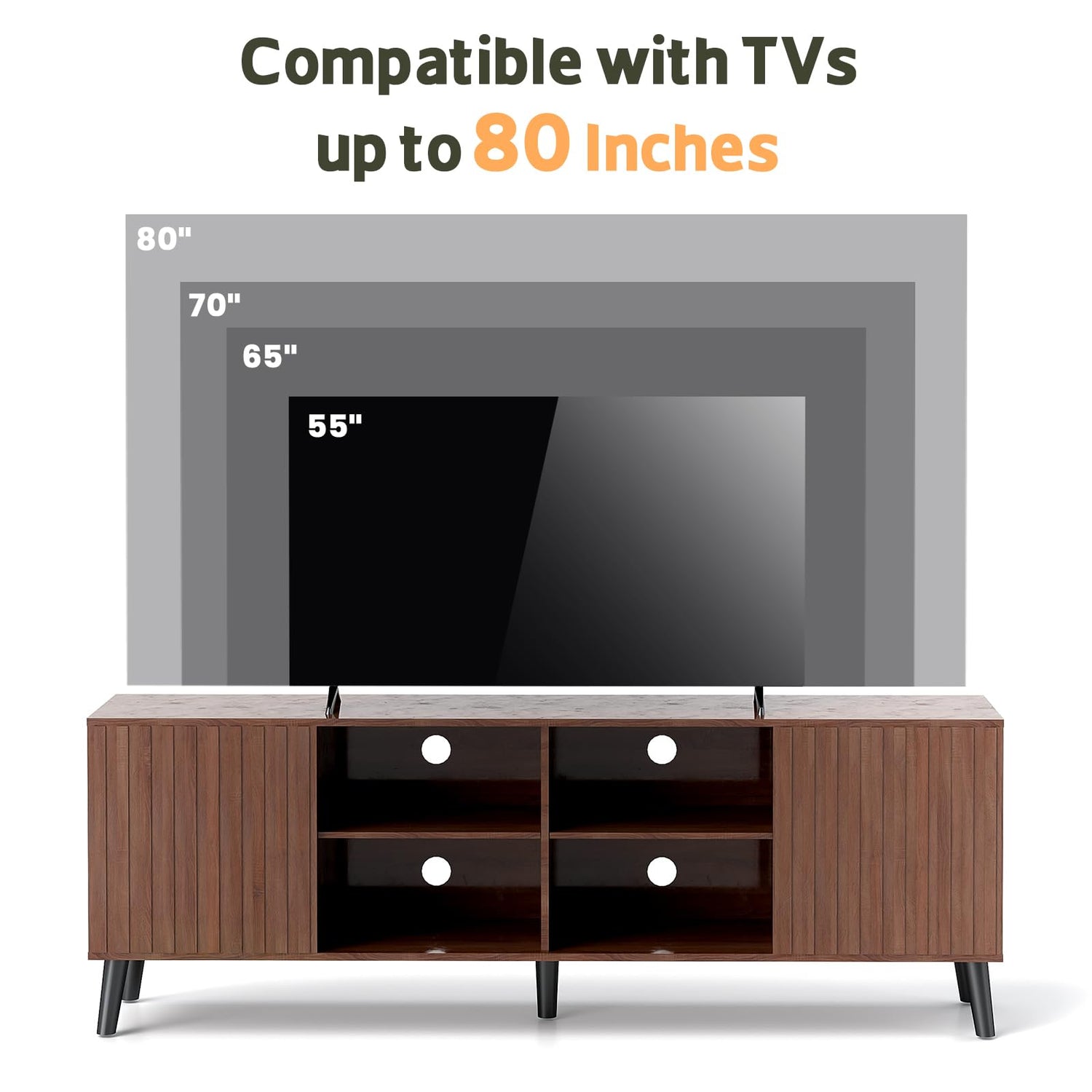 Lamtor Mid-Century Modern TV-Stand - Fluted TV Stand for 80 75 65Inch TV, Entertainment Center with Storage, Media Console with Adjustable Shelves for Living Room, Walnut