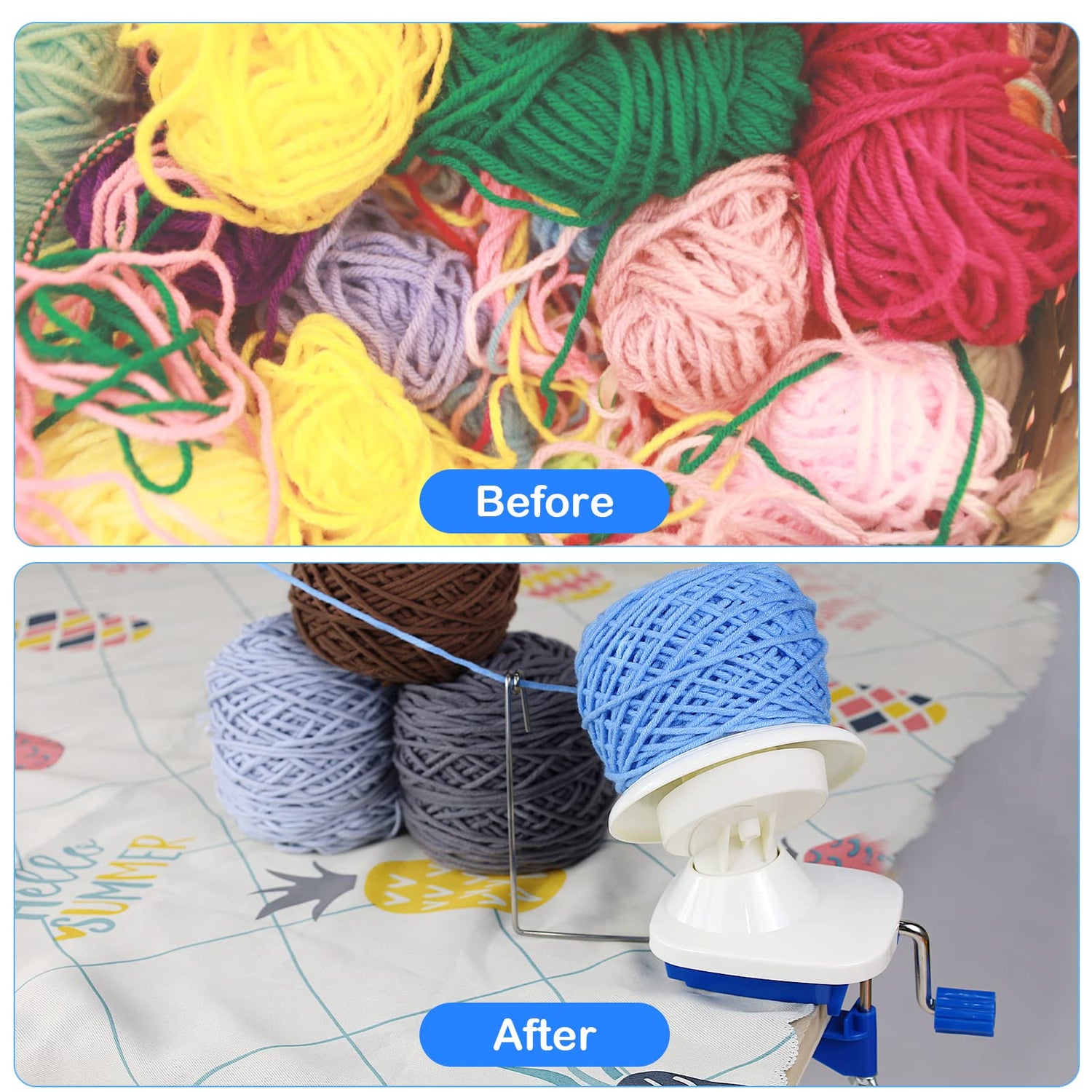 LAMXD Needlecraft Yarn Ball Winder Hand Operated,Capacity 4-Ounce,Blue,Portable Package,Easy to Set Up and Use,Sturdy with Metal Handle and Tabletop Clamp,Including 8 Sizes Crochet Hooks Set