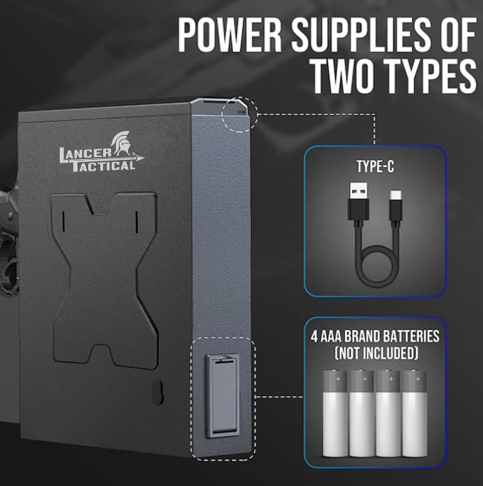 Lancer Tactical Biometric Slider Handgun Gun Safe for Pistols Nightstand, Desk, Bed Side,Truck-Quick-Access Firearm Safety Device with Fingerprint Lock or Key Pad, PIN Code, and KEY Access