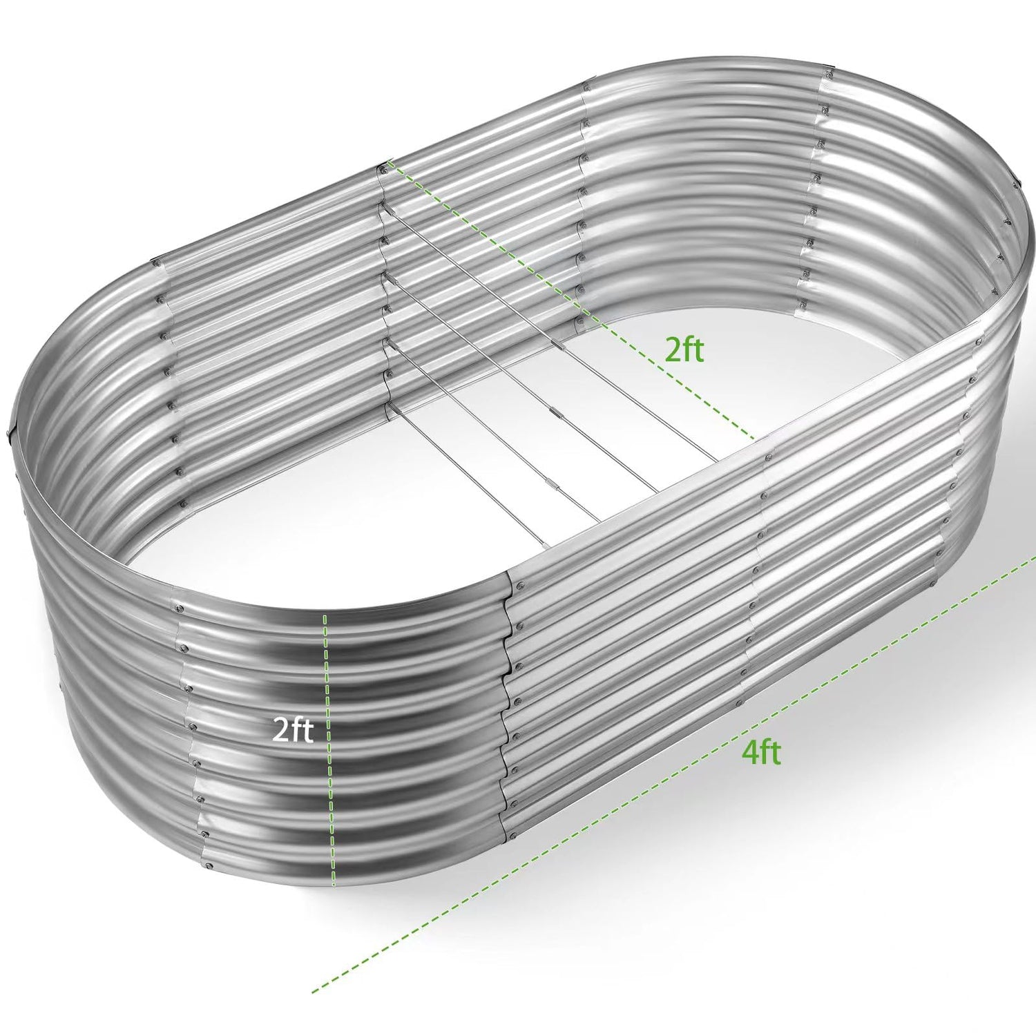 Land Guard 24“ Tall Galvanized Raised Garden Bed Kit, Galvanized Planter Garden Boxes Outdoor, Oval Large Metal Raised Garden Bed for Vegetables (Classic Silver, 4×2×2ft)