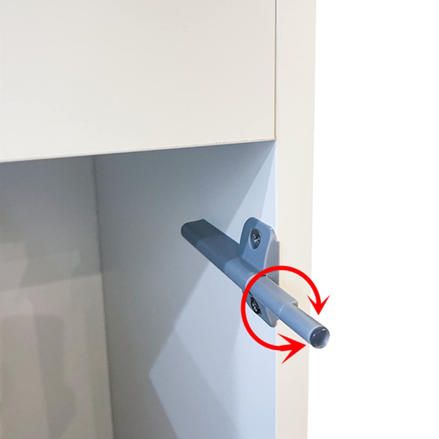 - 【Adjustable Door and Additional Accessories】 The door hinge includes an adjustable screw for slight door position adjustments to align with the cabinet edge. After adjusting, the hinge cover can be mounted to protect screws, complemented by included Pipe Tie and Fixture Sticker for neat and organized cable and pipe layouts inside the cabinet.