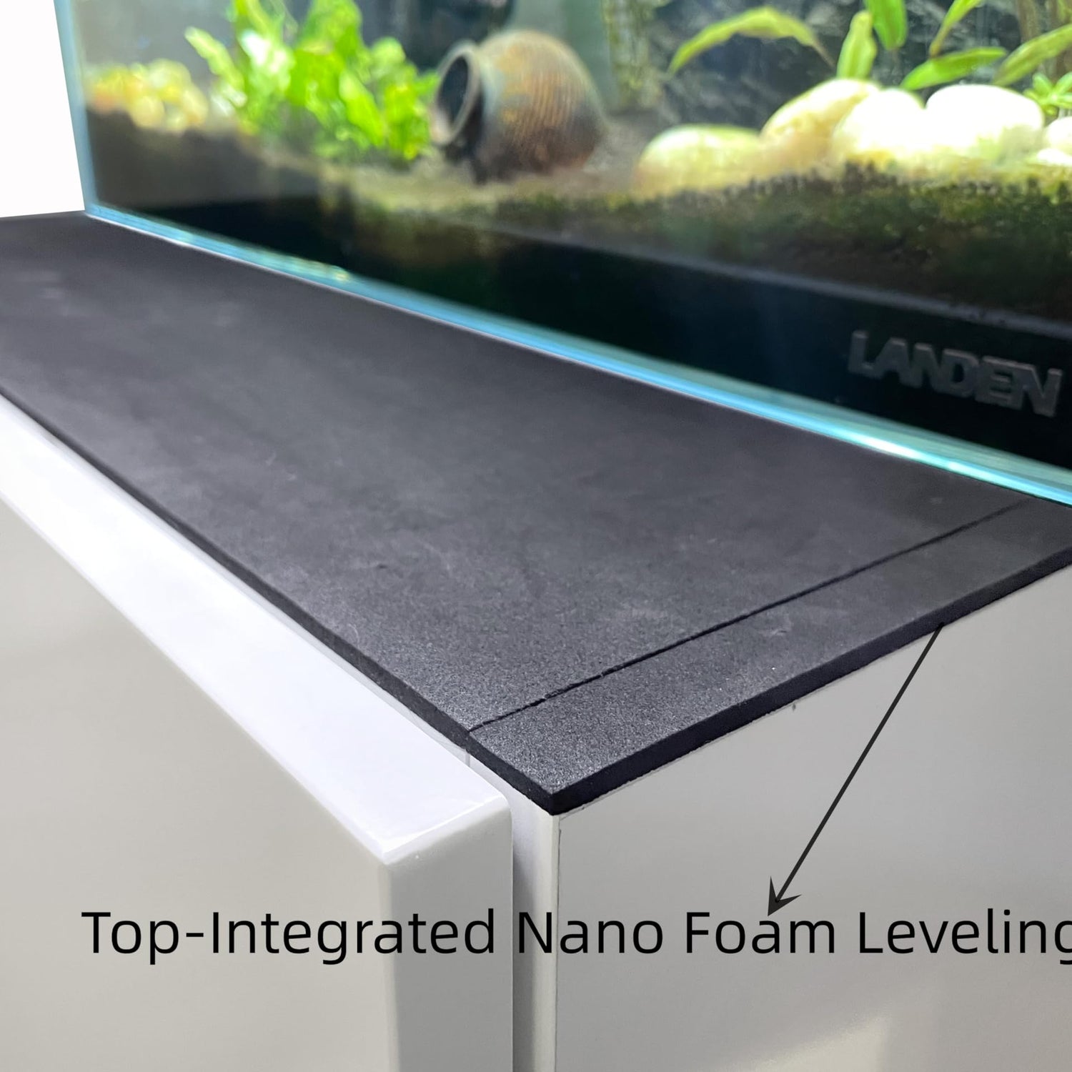 - 【Stable and Modern Design】 Features a contemporary minimalist style suitable for rimless aquariums, seamlessly matching any home decor with its simple black and white theme. The cabinet edges are treated with German sealing edge technology for a perfect seamless appearance, accompanied by spacious storage for large aquarium equipment.