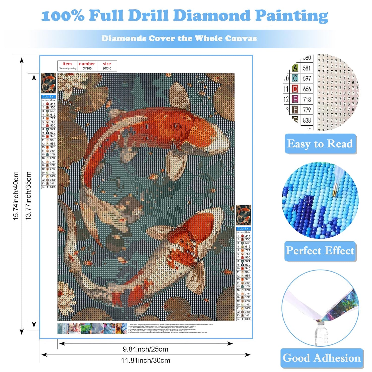 Landscape Fish Diamond Art Kits for Adults, Fish Diamond Painting Kit for Beginners, Diamond Dot, Animal Dimond Art Paintings Kit, Full Drill Gem Painting, Crafts for Adults, Home Wall Decor 12x16inch
