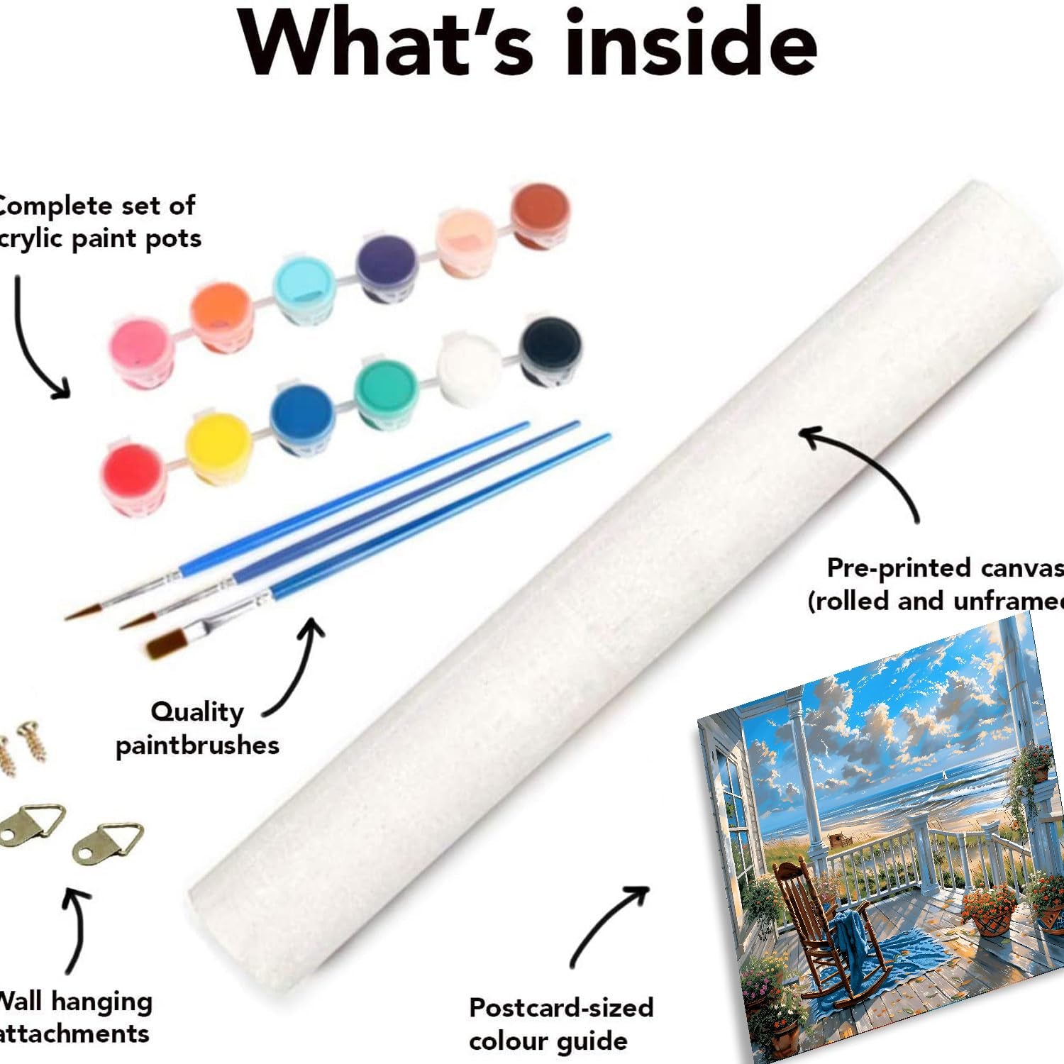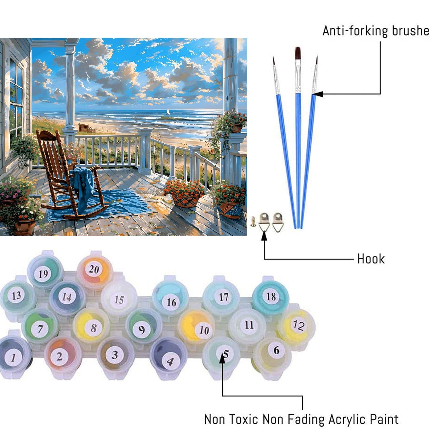 - You will get: The paint by numbers kit for adults includes a 16 x 20 inch(40x50cm) canvas, 3 brushes and a set of high-quality paint.Also included are small accessories such as hooks, screws and a guided atlas.