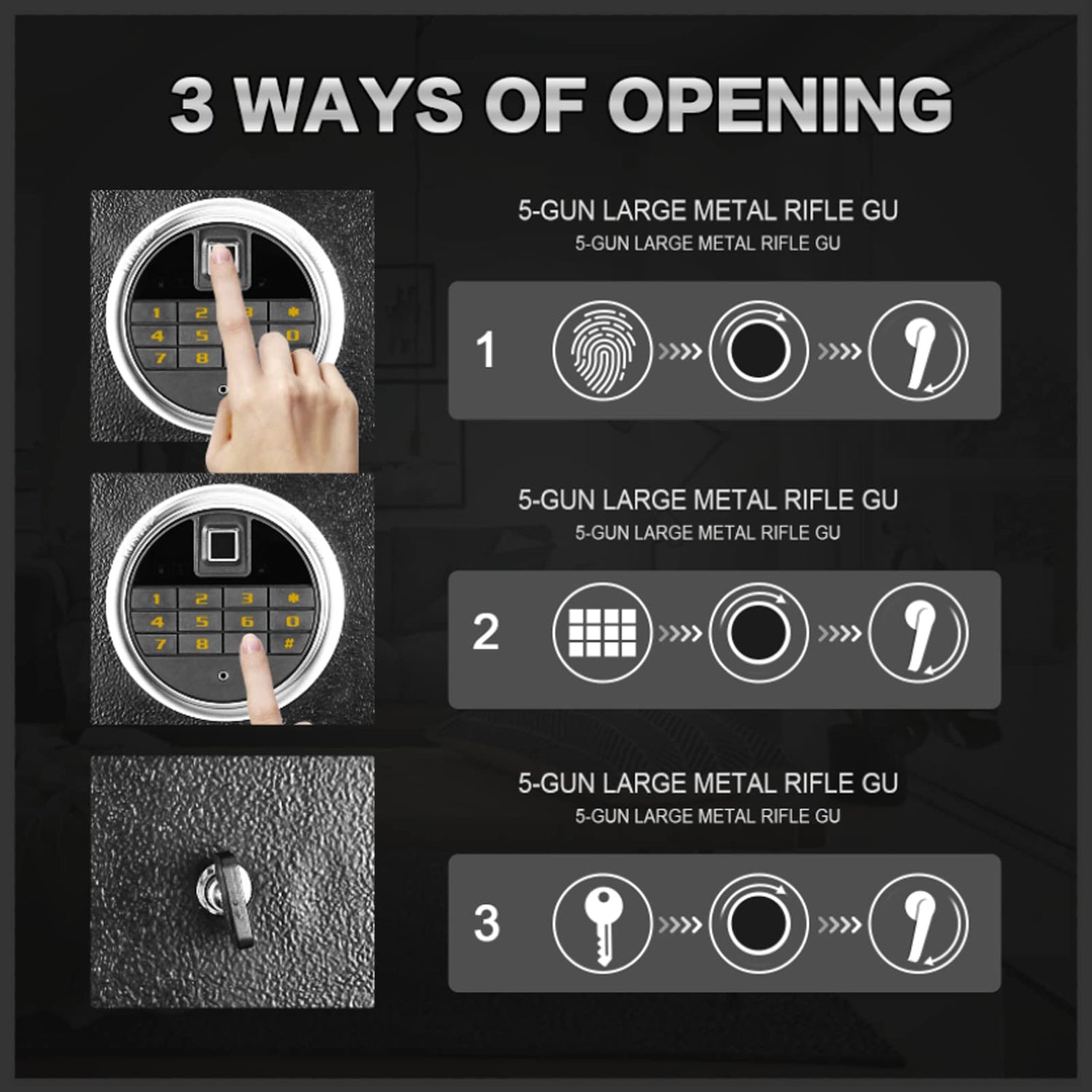 - 【Quick Access Biometric Rifle Safe】Biometric Rifle Safe stores up to 5 rifles and some handguns,is designed for quick firearm access during emergencies.Stores up to 100 Fingerprints and feel confident protecting your firearms, It is good for preventing unwanted visitors or your children from accessing your guns. With a biometric fingerprint safe, you no longer need to remember a combination or carry a key. Everything you need is right at your fingertips!