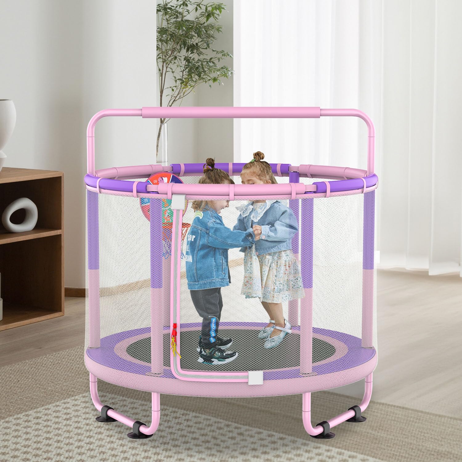 - [SAFETY UPGRADE] LANGXUN 60-Inch Mini Kids Trampoline features a baby fence-style frame structure, a new generation of thickened and heightened safety net with 360° surrounding thick safety foam tubes. The stitched jump mat and protective pad design prevent contact with the springs, ensuring children's foot safety. The large suction cups on the feet firmly grip the ground, providing added stability during play. Suitable for children aged 1 to 8.